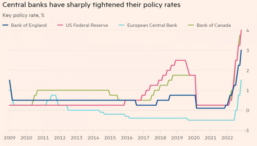 Доллар уже не тот, что раньшеИнстаФорекс - Instaforex, 2 года назад Тремя китами восходящего тренда по индексу USD была американская исключительность, а также агрессивное повышение ставки по федеральным фондам и высокий спрос на доллар как валюту-убежище. Экономика США выглядела более устойчивой, чем другие. ФРС бежала впереди остальных центробанков как вожак стаи по дороге ужесточения денежно-кредитной политики, а многочисленные потрясения в мировой экономике и политике заставляли инвесторов прятаться в спасительных гаванях. В ноябре все перевернулось с ног на голову. Так стоит ли удивляться перелому тренда по EURUSD? Когда Федрезерв в марте начал процесс монетарной рестрикции, потолок ставки по федеральным фондам оценивался срочным рынком в 2,8%. Сентябрьский прогноз FOMC поднял его до 4,6%, а слова Джерома Пауэлла, что по факту пик окажется еще выше – до 5%. До релиза данных по американской инфляции за октябрь на рынке даже циркулировали слухи о 6%, однако замедление потребительских цен заставило инвесторов снизить планку. В итоге стоимость заимствований может не дотянуть до 5%. В то же время инфляция в еврозоне еще не достигла своего максимума, что заставляет рынок удерживать высокие ожидания по ставке по депозитам ЕЦБ. Разница между предполагаемыми экстремальными ставками в США и еврозоне сокращается, что играет на руку «быкам» по EURUSD. Динамика предполагаемых экстремальных ставок центробанков Чем агрессивнее ФРС и другие центробанки ужесточали денежно-кредитную политику, тем выше были риски того, что мировая экономика окунется в рецессию. Регуляторы ставили во главе угла победу над инфляцией и зачастую были готовы пожертвовать экономическим ростом. С течением времени их позиция изменилась. Сначала Резервный банк Австралии и Банк Канады замедлили скорость монетарной рестрикции, затем намеки об этом сделали Федрезерв и Банк Англии. Даже такой «ястреб» ЕЦБ, как Роберт Хольцманн, отметил, что Управляющий совет должен помнить о слишком резких действиях, которые способны довести еврозону до стагфляции или спада. Динамика ставок центробанков В результате была реанимирована идея мягкой посадки экономики США, что предполагает растущие шансы, что она все-таки избежит рецессии. В таких условиях спрос на активы-убежища снижается и индекс USD падает. Наконец, теплая погода в Старом Свете, рост заполняемости запасов газа до 95% вместо обычных 80-85%, падение цен на голубое топливо дали повод для разговоров, что экономика еврозоны не так уж плоха по сравнению со Штатами. Она также способна избежать спада. Если так, то об американской исключительности можно забыть, что придает силы поклонникам евро. Технически на дневном графике EURUSD «быки» предпринимают вторую по счету атаку в надежде пробиться как к психологически важной отметке 1,05, так и к таргету на 161,8% по паттерну AB=CD. Он, напомню, расположен вблизи 1,061. Озвученные в предыдущих двух материалах стратегии покупок евро на откатах продолжают работать как часы. Зачем же от них отказываться? Материал предоставлен компанией InstaForex - www.instaforex.com |