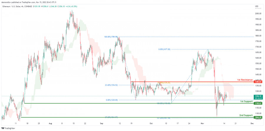 ETH/USD: ожидается усиление медвежьего импульса. Прогноз на 16 ноября 2022ИнстаФорекс - Instaforex, 2 года назад На 4-часовом графике пара ETH/USD торгуется в медвежьем тренде. Цена находится ниже облака Ишимоку, что указывает на нисходящий импульс. Если медвежий импульс сохранится, цена пробьет 1-й уровень поддержки 1190.61, соответствующий предыдущему лоу и 100% уровню коррекции Фибоначчи, и направится ко 2-му уровню поддержки 1064.49, который соответствует уровням расширения Фибоначчи -27.2% и 127.2%. В качестве альтернативы цена может вырасти, чтобы повторно протестировать 1-й уровень сопротивления 1385.07, соответствующий уровням коррекции Фибоначчи 23.6% и 61.8%. Торговая рекомендация Вход: 1385.07 Условия для входа: 1-й уровень сопротивления, где расположены уровни коррекции Фибоначчи 23.6% и 61.8% Тейк-профит: 1190.61 Условия для фиксации прибыли: 1-й уровень поддержки, где расположены предыдущий уровень свинг-лоу и 100% уровень коррекции Фибоначчи Стоп-лосс: 1677.00 Условия для активации ордера стоп-лосс: область, где располагался предыдущий хай Материал предоставлен компанией InstaForex - www.instaforex.com |