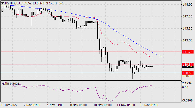 Прогноз по USD/JPY на 17 ноября 2022 годаИнстаФорекс - Instaforex, 2 года назад В среду пара USD/JPY провела в диапазоне вложенных линий ценового канала 138.55-139.84, сделав попытку выхода над сопротивление. Сегодня с утра цены пытается во второй раз преодолеть 139.84. закрепление над уровнем открывает цель 141.76. Закрепление над 141.76 ставит под сомнение способность цены вернуться потом к текущим уровням.