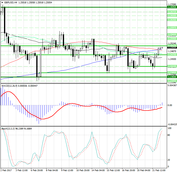 GBP/USD. Быки уверенно наступают...FxTeam - FxPro, 8 лет назад Обратив внимание на 4-х часовой график можно заметить, что:курс валюты нашел значительную поддержку на уровне 1.2415,с американской сессии вторника в данной валютной паре доминируют бычьи настроения,рост котировок замедлился при подходе к 'зеркальному' уровню 1.25125... GBP/USDТеперь посмотрим на индикаторы: Курс валюты 'неуверенно' закрепился выше скользящих средних с периодами 144, 89, 55 и 34, которые теперь являются рядом уровней поддержки 1.24975/925, 1.2475 и 1.24575. Гистограмма MACD пересекла нулевую линию снизу вверх, теперь расположена в положительной зоне и выше своей сигнальной линии, продолжает плавно повышаться и тем самым подает сигнал на покупку британского фунта (GBP). Осциллятор стохастик находится в зоне перекупленности и формирует аналогичный сигнал, поскольку линия %К поднимается выше линии %D. Несмотря на два одинаковых и четких сигнала, в качестве подтверждения того, что на рынке форекс в данной валютной паре вновь могут усилиться бычьи настроения, желательно дождаться пробоя зеркального уровня 1.25125, который может открыть путь к уровням 1.2565 и 1.25975. В противном случае, может повториться сценарий, который можно было наблюдать в прошлый четверг и пятницу, когда медведи развили контратаку, а их целями стали уровни 1.2470 и 1.2415. Уровни сопротивления: 1.25125, 1.2545, 1.2565, 1.25975, 1.2635, 1.2655, 1.26725, 1.2695 Текущая цена: 1.2505 Уровни поддержки: 1.24975/925, 1.2475/70, 1.24575, 1.2415, 1.2400, 1.2385, 1.2365 |