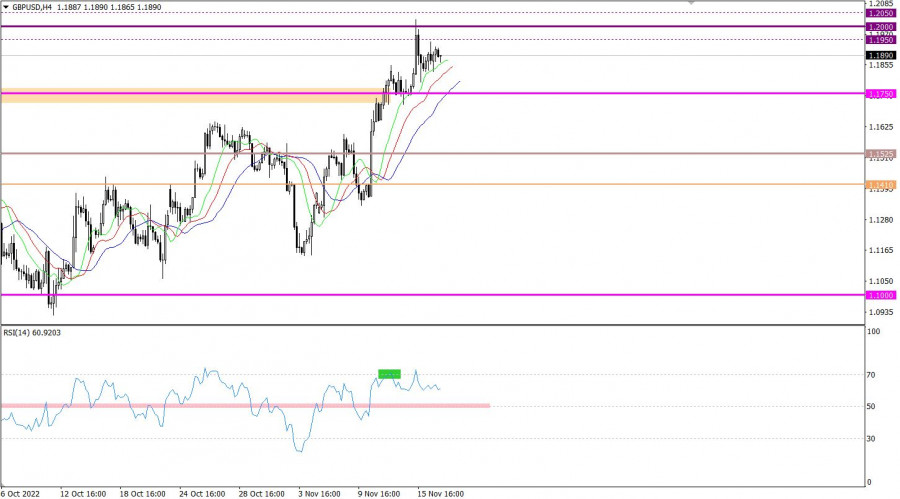 Горящий прогноз по GBP/USD от 17.11.2022ИнстаФорекс - Instaforex, 2 года назад Несмотря на то, что инфляция в Великобритании выросла с 10,1% до 11,1%, что в общем-то снимает все вопросы относительно темпов дальнейших повышений ставки рефинансирования Банка Англии, фунт фактически остался стоять на месте. Хотя вроде как совершенно очевидно, что в ходе каждого из ближайших двух заседаний правления британского регулятора, ставка рефинансирования будет повышаться на семьдесят пять базисных пунктов. Что должно способствовать росту британской валюты. Однако, за последнее время она и без того уже столь сильно выросла, что ее перекупленность не вызывает никаких сомнений. И рынок лишь ждет подходящего повода для начала коррекции. Инфляция (Великобритания): Именно по этому несколько удивляет отсутствие реакции рынка на данные по розничным продажам в Соединенных Штатах. Темпы их роста замедлились с 8,6% до 8,3%, при прогнозе в 6,9%. Так что несмотря на снижение потребительской активности данные оказались лучше прогнозов. Причем заметно лучше. И в условиях чрезмерной перепроданности доллара этого должно хватить для начала коррекции. Однако, все испортили данные по промышленному производству, темпы роста которого замедлились с 5,0% до 3,3%. И мало того, что замедление оказалось довольно существенным, так еще и предыдущие данные были пересмотрены в меньшую сторону, с 5,3%. А по прогнозам, темпы роста промышленного производства должны были замедлиться до 5,1%. Промышленное производство (Соединенные Штаты): В любом случае четко видно, что рынок явно ищет повод для движения в сторону укрепления доллара. Но сегодня вновь с этим могут возникнуть трудности. Данные по инфляции в Европе можно даже и не рассматривать, так как публикуются итоговые данные, которые должны лишь подтвердить предварительную оценку, давно уже рынком учтенную. Так что остаются лишь заявки на пособия по безработице в Соединенных Штатах. Только вот количество первичных обращений должно вырасти на 2 тыс., а повторных еще на 17 тыс. Все это скорее должно способствовать ослаблению доллару, но как показала практика последних пары дней, дешеветь ему дальше некуда. Таким образом, рынок скорее всего продолжит топтаться на месте. Число повторных заявок на пособия по безработице (Соединенные Штаты): Валютная пара GBPUSD находится в стадии отката-застоя относительно психологического уровня 1.2000. Отсутствие перехода в полноразмерную коррекцию говорит о том, что интерес трейдеров к длинным позициям по фунту стерлингов все еще сохраняется на рынке. Технический инструмент RSI H4 движется в верхней области индикатора 50/70, что подтверждает домыслы о преобладающем восходящем настрое среди участников рынка. Скользящие линии MA на Alligator H4 и D1 направлены вверх, этот сигнал соответствует общему настрою трейдеров по паре GBPUSD. Ожидания и перспективы В данной ситуации застой минувшего дня может служить катализатором торговых сил, при котором возникла перегруппировка рабочих позиций. В этом случае не исключаются последующие скачки цены. В качестве сигнальных уровней рассматриваются значения: 1.2050, при восходящем сценарии, который может привести к пролонгации действующего цикла; 1.1750, при удержание ниже данного значения возможен переход из стадии отката в стадию полноразмерной коррекции. Комплексный индикаторный анализ в кра