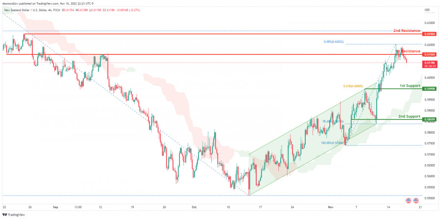 NZD/USD: ожидается усиление бычьего импульса. Прогноз на 17 ноября 2022 г.ИнстаФорекс - Instaforex, 2 года назад На 4-часовом графике пара NZD/USD пробила восходящий канал и сейчас движется выше облака Ишимоку. Если бычий импульс сохранится, цена может пробить 1-й уровень сопротивления 0.61565, соответствующий предыдущему уровню свинг-хай и уровню коррекции Фибоначчи 0%, и затем направиться ко 2-му уровню сопротивления 0.62504, который соответствует уровню коррекции Фибоначчи 78.6%. В качестве альтернативы цена может вернуться к 1-му уровню поддержки 0.59998, где расположена проекция Фибоначчи 61.8%. Торговая рекомендация Вход: 0.61565 Условия для входа: 1-й уровень сопротивления Тейк-профит: 0.59998 Условия для фиксации прибыли: 1-й уровень поддержки и проекция Фибоначчи 61.8% Стоп-лосс: 0.62504 Условия для активации ордера стоп-лосс: 2-й уровень сопротивления и предыдущий уровень свинг-хай Материал предоставлен компанией InstaForex - www.instaforex.com |