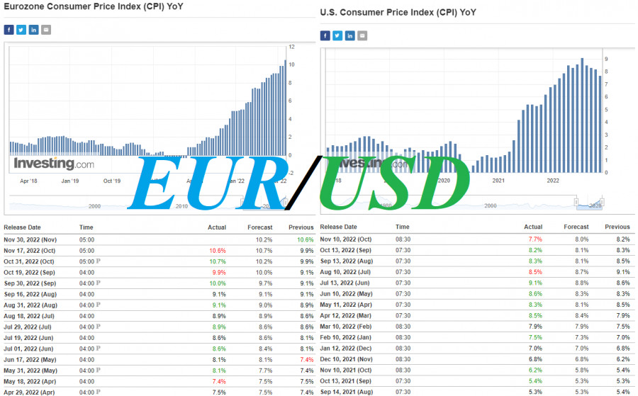 EUR/USD: восходящая коррекция если не завершилась, то близка к этомуИнстаФорекс - Instaforex, 2 года назад Высокая волатильность продолжает раскачивать рынки, однако, стоит заметить, уже в достаточно узких диапазонах. Условная пружина сжимается все сильнее. При этом многие экономисты и наблюдатели уже начинают говорить о том, что недавняя коррекция доллара была чрезмерной. Мы помним, что доллар резко ослаб в последние дни после того, как в минувший четверг были опубликованы более слабые, чем ожидалось, данные по инфляции в США, указавшие на замедление ее роста. Так, индекс потребительских цен (CPI) снизился в октябре с 8,2% до 7,7% (в годовом исчислении), сильнее прогноза о снижении к 8,0%. Базовый (Core) CPI скорректировался до 6,3% против прогноза 6,5% (также в годовом исчислении) и 6,6% в прошлом месяце. Определенно, усилия ФРС по сдерживанию инфляции в США приносят результаты. Это повышает вероятность того, что темпы ужесточения монетарной политики в скором времени могут быть снижены. До публикации этих инфляционных индикаторов широко ожидалось, что на заседании в декабре (13-14 декабря) процентная ставка вновь будет повышена на 0,75% (до 4,75%). Но вот со стороны руководства ФРС (в частности, вице-председателя ФРС Лаэль Брейнард и управляющего ФРС Кристофера Уоллера) уже звучат некоторые осторожные заявления о том, что в ближайшей перспективе возможно замедление темпов ужесточения монетарной политики. Однако, по утверждению той же Лаэль Брейнард, инфляция остается еще слишком высокой и для ее возращения к целевому уровню 2,0% предстоит ещё большая работа. В пользу того, что нисходящая коррекция доллара близка к завершению, говорит тот факт, что, по мнению многих экономистов, ФРС и другие крупнейшие мировые центральные банки, в частности ЕЦБ, скорее всего, начнут синхронно снижать темпы повышения своих процентных ставок. А это значит, что влияние изменений в монетарной политике ФРС и других крупнейших центральных банков мира на динамику доллара и основных валют будет относительно нейтральным. Тогда здесь вновь на передний план будет выходить общая экономическая ситуация в каждой стране с крупнейшей из мировых экономикой, а также геополитические риски. А вот здесь в США с этим дела обстоят лучше, чем, скажем, в Европе, где присутствует неопределённость на рынке энергоносителей, грозящей еще более серьёзными перебоями в их поставках, инфляция еще выше (по опубликованным сегодня уточнённым данным, уровень годовой потребительской инфляции в еврозоне в октябре составил 10,6%, в то время как в США он составляет 7,7%), а на Украине, части этой самой Европы, военный конфликт пока что имеет перспективу эскалации. А от этого европейская экономика пострадает больше, чем американская. Если импорт из России в Европу полностью прекратится, найти ему замену у европейских производителей быстро вряд ли получится. Возникшие сбои в цепочках поставок больно ударят по европейской экономике, что, впрочем, уже происходит пока что в более мелких масштабах. О ближайших перспективах доллара и его индекса DXY мы писали в нашем вчерашнем обзоре DXY: в ожидании сигнала. На покупку?. Что же касается основного конкурента доллара на валютном рынке евро и пары EUR/USD, то на момент публикации данной статьи она торговалась вблизи отметки 1.0365, вновь не сумев преодолеть ключевой уровень сопротивления 1