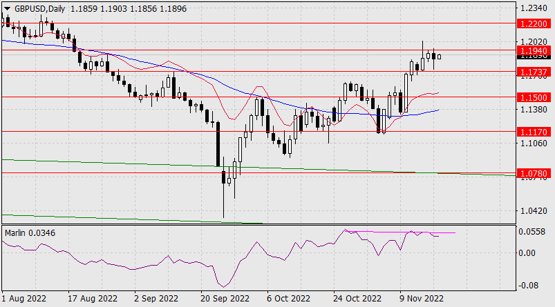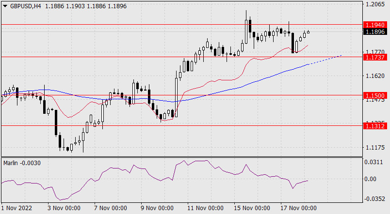 Прогноз по GBP/USD на 18 ноября 2022 годаИнстаФорекс - Instaforex, 2 года назад Вчера британский фунт сделал первую попытку разворота от сопротивления 1.1940, фактически у него была задумка произвести коррекцию от всего 16-ти фигурного роста с 26 сентября. Задача сложная, поэтому цена не пока решилась атаковать поддержку 1.1737. Дивергенция цены с осциллятором Марлин набирает силу. Вероятно, на будущей неделе такая атака состоится.