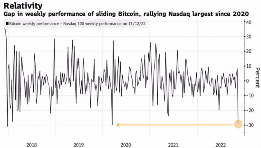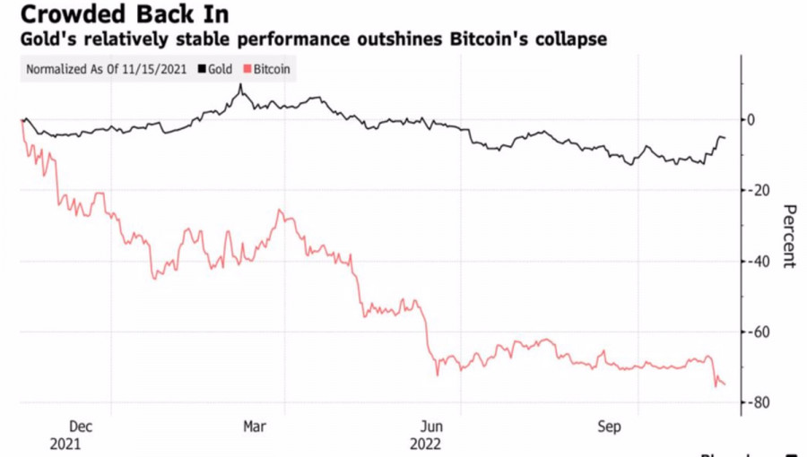 Биткойн стал банкротомИнстаФорекс - Instaforex, 2 года назад От великого до смешного один шаг. Еще в апреле 42% хедж-фондов, участников опроса PWC, прогнозировали, что до конца 2022 биткойн будет стоить от 75000 до 100000. В 2021 JP Morgan не исключал возможности роста BTCUSD до 146000 в долгосрочной перспективе благодаря вытеснению токеном золота. Сейчас компания ожидает падения лидера сектора крипто-активов до 13000 на фоне потрясений, связанных с банкротством FTX. У инвесторов возникает закономерный вопрос: кто следующий? И они избавляются от токсичных активов. Динамика биткойна и золота В отличие от депозитов в банках, средства, размещенные клиентами на таких крипто-платформах, как FTX, не защищены страховыми организациями или государством. Вкладчики вынуждены рассчитывать исключительно на процедуру банкротства. А суд должен разобраться, кому именно принадлежат деньги - им или самой платформе? И хоть некоторые компании уже начинают выкупать претензии за 3-5 центов за 1 доллар, удар по системе стал очень болезненным для биткойна. На неделе к 11 ноября он просел на 23%, что стало худшей динамикой с июня. Но тогда речь шла о падении всего класса рискованных активов. Сейчас же за пятидневку S&P 500 вырос на 5,9% благодаря замедлению американской инфляции и надеждам, что в скором времени и ФРС будет сбрасывать скорость ужесточения денежно-кредитной политики. В результате корреляция между фондовыми индексами США и BTCUSD стала самой низкой в 2022. Для Nasdaq Composite она упала до самого дна с 2020. Недельная динамика биткойна Главным фактором, поддерживающим биткойн в последнее время, стал приток капитала от институциональных инвесторов. Они владели около 5% всего объема эмитированного токена. В то время как снижение капитализации сектора криптовалют с рекордного пика в $3 трлн в 2021 до текущих $843 млрд означает, что этот класс активов составляет менее 1% от мирового рынка акций. Банкротство FTX показало ошибочность версии, что биткойн может стать полноправным активом инвестиционного портфеля. Зачем его покупать, если можно найти более надежную альтернативу? Лучше ставить на снижение котировок BTCUSD или хеджировать риски продажей фьючерсных контрактов. Именно этим занимаются институциональные инвесторы. В результате рынок перешел в бэквардейшн, когда цена спот выше фьючерсной. Такого не было во время предыдущих масштабных распродаж. Несмотря на серьезную боль, нанесенную банкротством FTX, биткойн пытается зализать часть ран. Этому способствует история: 6 предыдущих обвалов на 20% и более в течение недели в последующем приводили к росту BTCUSD в среднем на 9% в течение месяца. Технически на дневном графике биткойна имеет место устойчивый нисходящий тренд. Котировки отдаляются от скользящих средних. Их отбой от динамических сопротивлений на 17200, 17500 и 1800 следует использовать для формирования коротких позиций. Как, впрочем, и успешный штурм поддержек на 16340 и 15870. В качестве первоначальных таргетов выступают отметки 14700 и 13600. Материал предоставлен компанией InstaForex - www.instaforex.com |