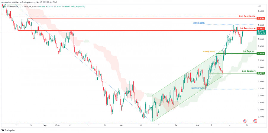 NZD/USD: ожидается усиление бычьего импульса. Прогноз на 18 ноября 2022ИнстаФорекс - Instaforex, 2 года назад На 4-часовом графике пара NZD/USD пробила восходящий канал и сейчас движется выше облака Ишимоку. Если бычий импульс сохранится, цена может пробить 1-й уровень сопротивления 0.61632, соответствующий предыдущему уровню свинг-хай и уровню коррекции Фибоначчи 0%, и затем направиться ко 2-му уровню сопротивления 0.62504, который соответствует уровню коррекции Фибоначчи 78.6%. В качестве альтернативы цена может вернуться к 1-му уровню поддержки 0.59998, где расположена проекция Фибоначчи 61.8%. Торговая рекомендация Вход: 0.61565 Условия для входа: 1-й уровень сопротивления Тейк-профит: 0.59998 Условия для фиксации прибыли: 1-й уровень поддержки и проекция Фибоначчи 61.8% Стоп-лосс: 0.62504 Условия для активации ордера стоп-лосс: 2-й уровень сопротивления и предыдущий уровень свинг-хай Материал предоставлен компанией InstaForex - www.instaforex.com |