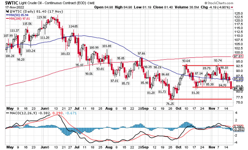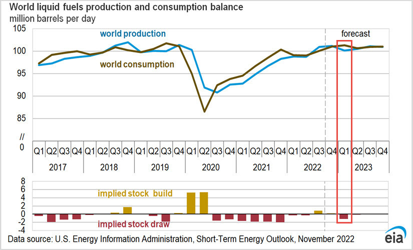 Чудеса на рынке нефти — экономика за, фьючерсы противИнстаФорекс - Instaforex, 2 года назад Здравствуйте, уважаемые коллеги! Продолжаем анализировать ситуацию с точки зрения межрыночного технического анализа, и сегодня в центре нашего внимания будут события происходящие на текущей неделе, когда наиболее явно проявились противоречия между реальным спросом и динамикой цены нефти на американских биржах. Все предыдущие несколько недель, информированные источники сообщали о нехватке реальных объёмов нефти, вызванной ограничениями группы ОПЕК+ и сверхнормативным сокращением добычи в России, которая согласно договорённостям, достигнутым в октябре, могла бы добывать 10.5 млн. баррелей нефти ежесуточно. Однако эту норму российские нефтедобытчики выполняют с большим трудом. Согласно заявлениям вице-премьера Новака, в октябре добыча нефти в России составила 9.9 млн. баррелей в сутки. При этом согласно данным Американского энергетического агентства (US EIA) в октябре Россия добыла 10.86 млн. баррелей. Расхождение довольно существенное, но разница в учёте показателей возникла в виду того, что подсчёты US EIA, учитывают газовый конденсат, а Новак говорил про чистую добычу нефти, на которую и установлена квота ОПЕК+. Как видим, Россия не выполняет возможный норматив добычи, также есть проблемы и в других странах, которые не выбирают свою квоту. В результате, если сейчас на рынке наблюдается шаткий баланс спроса и предложения, то уже в первом квартале 2023 года, на рынке, по ряду причин, в том числе ввиду вводимого эмбарго на поставки российской нефти, может возникнуть дефицит, который по прогнозам тех же американцев составит -1.19 млн. баррелей в сутки (рис.1). рис.1: Баланс добычи нефти и её потребления Глядя на баланс спроса и предложения, и снижение текущих котировок становится не очень понятно - почему не с того не сего котировки нефти снижаются? Однако, как можно предположить, расхождение возникло в связи с действиями игроков на фьючерсных рынках в США. Действительно если посмотреть на краткосрочный прогноз от US EIA на конец 2023 года, то мнения аналитиков и торговцев опционами на сорт нефти WTI #CLрадикально разошлись, что в моей практике приходится наблюдать впервые за много лет. Обычно расхождения в оценках составляют пару - тройку долларов. Сейчас же разница составляет 14 долларов. Экспертная оценка на конец следующего года составляет $92, торговцы же предполагают уровень $78 (рис.2). Естественно, что по мере развития ситуации оценки будут корректироваться, но это показывает уровень восприятия проблемы аналитиками и трейдерами. Одни используют возможности разведки, другие же находятся под влиянием средств массовой информации, вещающими из каждого утюга о скорой рецессии в американской экономике, и собственным пониманием того, что происходит Рис.2: Прогноз нефти WTI #CL от аналитиков и трейдеров на 2023 год Очень часто приходится слышать, что цену на нефть опускают спекулянты. На самом деле часть истины в этом есть, но только часть, ибо спекулянты это априори покупатели и продают они нефть только тогда, когда котировка образует понижающийся тренд. При этом ликвидность на рынке нефти сейчас достаточно низкая, что подтверждает отчёт COT Report. В настоящий момент совокупный показатель (фьючерсы + опционы) Открытого Интереса — ОИ составляет чуть больше 2 млн. контрактов. 