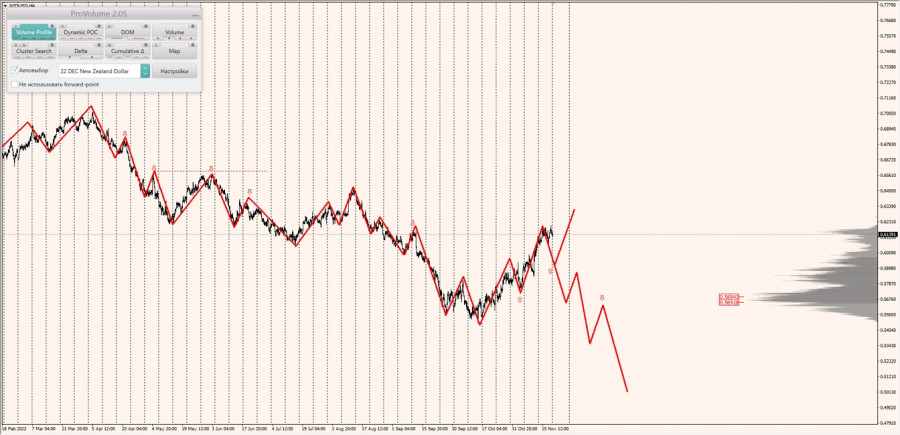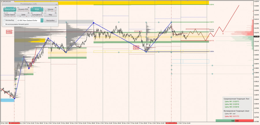 Среднесрочная тенденция: в лонг. Максимальное скопление объемов среднесрочной тенденции расположено в диапазоне по котировкам 0.61558-0.61657. В настоящий момент по паре совершаются инвестиционные операции ниже, указывая на слабость покупателей. Объемы последнего импульса по котировкам 0.60797-0.60911 и в настоящий момент пара торгуется выше, указывая на силу покупателей.