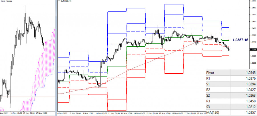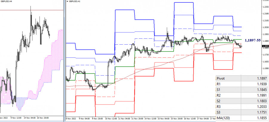 EUR/USD и GBP/USD 21 ноября – рекомендации технического анализаИнстаФорекс - Instaforex, 2 года назад EUR/USD Старшие таймфреймы Прошлая рабочая неделя обозначила торможение. Развитие снижения сейчас приведёт к формированию отбоя от встреченной зоны сопротивления и притяжения. Зона объединила в себе уровни дневной цели на пробой облака (1,0285 – 1,0369), заключительный уровень недельного креста Ишимоку (1,0309) и месячный краткосрочный тренд (1,0385). Ближайшие поддержки сегодня можно обозначить на рубежах 1,0209 – 1,0162 – 1,0093 (уровни дневного креста + недельный среднесрочный тренд). Н4 – Н1 На младших таймфреймах пара закрепилась ниже ключевых уровней, которые сейчас расположены в диапазоне 1,0357-45 (центральный Пивот-уровень + недельная долгосрочная тенденция). Работа ниже уровней обеспечивает медвежье преимущество, в настоящий момент тестируется поддержка 1,0263, далее ориентиром внутри дня может стать заключительный уровень классических Пивот-уровней (1,0212). Закрепление выше 1,0345-57 вновь повлияет на действующий баланс сил. На рынок могут вернуться бычьи настроения. Последующими ориентирами для подъёма внутри дня выступят сопротивления классических Пивот-уровней (1,0376 – 1,0427 – 1,0458). *** GBP/USD Старшие таймфреймы На прошлой неделе пара продолжала оставаться в зоне притяжения и влияния, встреченных сопротивлений 1,1781 – 1,1842 – 1,1895 (недельные и месячные уровни). В результате ситуация в своих выводах и ожиданиях не претерпела больших изменений. Основной задачей для игроков на повышение на данном участке по-прежнему является тестирование района 1,2099 – 1,2292 – 1,2302 (дневная цель на пробой облака + месячный среднесрочный тренд). В свою очередь снижение приведёт пару к поддержкам дневного креста Ишимоку (1,1681 – 1,1544), которые имеют усиление от недельного среднесрочного тренда. Н4 – Н1 На младших таймах пара в настоящий момент пытается закрепиться, спустившись под ключевые уровни 1,1897-55 (центральный Пивот-уровень + недельная долгосрочная тенденция). Если это удастся, то развитие получат медвежьи настроения. Если же быки вернут себе 1,1855-97, то далее они смогут восстанавливать свои позиции, закрепляясь выше сопротивлений классических Пивот-уровней (1,1939 – 1,1991 – 1,2033). *** При техническом анализе ситуации используются: старшие таймфреймы – Ichimoku Kinko Hyo (9.26.52) + уровни Фибо Киджун Н1 – Pivot Points (классические) + Moving Avarage 120 (недельная долгосрочная тенденция) Материал предоставлен компанией InstaForex - www.instaforex.com |
