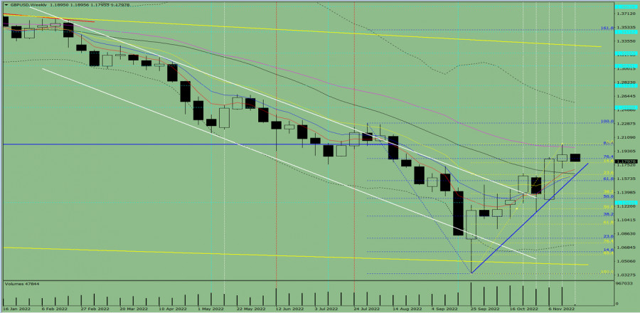 Технический анализ на неделю, с 21 по 26 ноября, валютная пара GBP/USDИнстаФорекс - Instaforex, 2 года назад Трендовый анализ. На этой неделе цена от уровня 1.1885 (закрытие последней недельной свечи) может начать движение вниз с целью 1.1628 – откатный уровень 23.6% (жёлтая пунктирная линия). От этого уровня цена может начать движение вверх со следующей целью 1.2026 – верхний фрактал (жёлтая пунктирная линия). При тестировании этой линии, возможно, движение цены вверх продолжится. Рис. 1 (недельный график). Комплексный анализ: - индикаторный анализ – вниз; Вывод по комплексному анализу: нисходящее движение. Общий итог расчёта свечи валютной пары GBP/USD по недельному графику: цена на неделе, вероятней всего, будет иметь нисходящую тенденцию с отсутствием первой верхней тени у недельной чёрной свечи (понедельник – вниз) и наличием второй нижней тени (пятница – вверх). Цена от уровня 1.1885 (закрытие последней недельной свечи) может начать движение вниз с целью 1.1628 – откатный уровень 23.6% (жёлтая пунктирная линия). От этого уровня цена может начать движение вверх со следующей целью 1.2026 – верхний фрактал (жёлтая пунктирная линия). При тестировании этого уровня, возможно, движение цены вверх продолжится. Альтернативный сценарий: цена от уровня 1.1885 (закрытие последней недельной свечи) может продолжить движение вниз с целью 1.1780 – откатный уровень 14.6% (жёлтая пунктирная линия). После тестировании этого уровня цена, возможно, начнёт движение вверх с целью достижения уровня 1.2009 – откатный уровень 85.4% (синяя пунктирная линия). Материал предоставлен компанией InstaForex - www.instaforex.com |