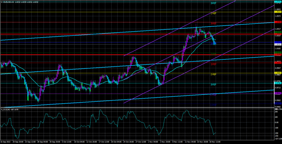 Обзор пары EUR/USD. 22 ноября. Евро и доллар находятся в балансе.ИнстаФорекс - Instaforex, 2 года назад Валютная пара EUR/USD в понедельник все же преодолела скользящую среднюю линию, поэтому сейчас мы получили первые сигналы на продажу. Напомним, что в последние несколько недель евро показывал на совсем логичный и обоснованный рост, и мы уже больше недели ждем сильной нисходящей коррекции. После того, как пара закрепилась ниже мувинга, появляются конкретные технические основания для этого. Мы уже не раз говорили, что в ближайшие несколько недель или месяцев веские причины у доллара продолжать падение вряд ли появятся. Ставка ФРС остается выше ставок БА и ЕЦБ. Даже если ставка ФРС будет расти более медленными темпами, чем ранее, она все равно будет расти еще 4 месяца совершенно точно. Геополитический фон остается очень сложным, а отношения между Западом и РФ продолжают ухудшаться. Более того, в ближайшие месяцы Финляндия и Швеция могут официально вступить в НАТО, и пока что даже не хочется думать, чем это может обернуться. Таким образом, оснований у доллара оставаться высоко относительно евро или фунта по-прежнему достаточно много. Следует помнить, что технические причины расти могут быть, и их даже может быть достаточно для того, чтобы пара росла, игнорируя фундаментальный и геополитический фоны. Однако так не может продолжаться длительное время, так как «техника», по сути, иллюстрирует поведение рынка в данное время. Что мы видим? В последние несколько месяцев пара евро/доллар растет после того, как два года падала. Несложно предположить, что сейчас рынок может просто закрывать короткие позиции, фиксируя прибыль по ним. Мы получаем в итоге техническую коррекцию, которую весьма сложно объяснить с точки зрения макроэкономики или фундамента. Но рано или поздно этот процесс «фиксации прибыли» будет завершен, и вот тогда евровалюте понадобятся конкретные основания для восходящего тренда. А таковых у нее будет по-прежнему немного. Почему, мы говорили в самом начале статьи. Как может повлиять ситуация со ставками ФРС на настроение рынка?С нашей точки зрения, ситуация со ставками ФРС сейчас максимально простая и понятная. Если не произойдет чего-либо не запланированного, то ставка вырастет еще один раз на 0,5% и еще два раза на 0,25%. Именно об этом говорили многие члены монетарного комитета ФРС в последние недели. Замедление темпов ужесточения уже просто необходимо, так как инфляция начала снижаться, снижается уже четыре месяца подряд, а об экономике тоже нужно думать, ведь каждое новое повышение ставки будет тормозить ее рост. О рецессии в американской экономике было сказано уже очень многое, но эксперты пока не могут даже сойтись во мнении, начнется ли она вообще и что можно называть «рецессией», а что нельзя. Напомним, что ФРС прогнозирует не рецессию, а небольшой спад, который был бы вполне логичным после резкого восстановления экономики после пандемии. Официальные прогнозы свидетельствуют о замедлении американской экономики в ближайшие два года, но не о ее падении. Если так все и будет, то у доллара на одну причину снижаться станет меньше. В Евросоюзе тоже сейчас не совсем понятно, что будет с экономикой. Несколько месяцев назад многие эксперты и журналисты откровенно разгоняли панику с отсутствием необходимого количества газа. Особенно эта т