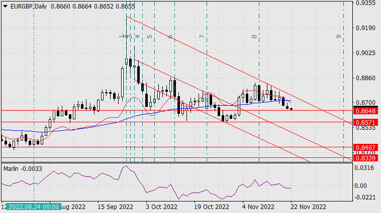 Среднесрочный прогноз по EUR/GBPИнстаФорекс - Instaforex, 2 года назад На дневном графике кросс-курса EUR/GBP цена продолжает снижение после закрепления под индикаторной линией Крузенштерна. Осциллятор Марлин снижается на отрицательной территории. Технического потенциала с лихвой хватает для отработки целевого уровня 0.8571 – минимума 28 октября. Уровень очень близок и к минимуму 6 сентября.