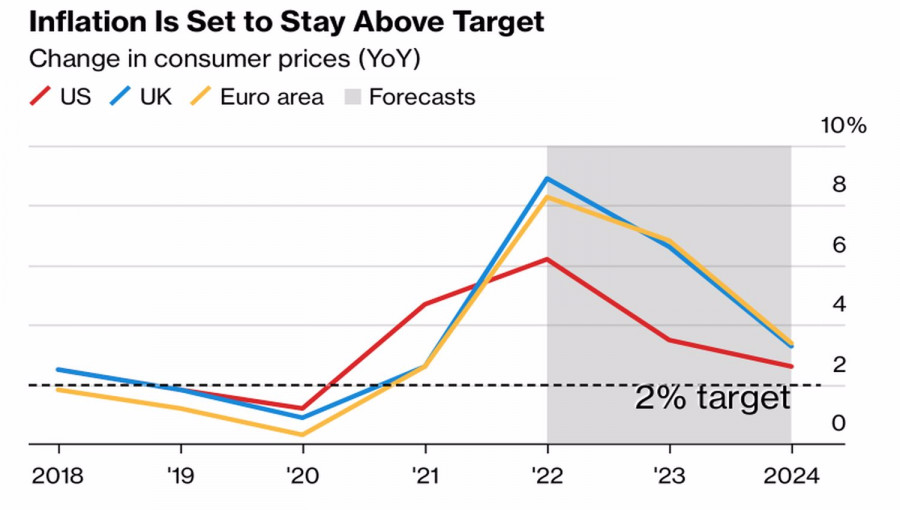 Доллар задает ритмИнстаФорекс - Instaforex, 2 года назад Избежит ли экономика США рецессии? Ответ на этот вопрос зависит от того, насколько быстро будет падать инфляция. А здесь не обойдется от скорости ужесточения денежно-кредитной политики ФРС. Центробанк ее снижает, чтобы осмотреться, оценить кумулятивный эффект своих предыдущих шагов и по возможности увести экономку от обрыва. Получится или нет, покажет время. Пока же EURUSD пытается разобраться, что думает на этот счет Федрезерв. Как правило, перевернутая кривая доходности, разница в ставках между 2- и 10-летними казначейскими облигациями, сигнализирует о приближающемся спаде. Она показывает, что ФРС в скором времени будет снижать ставки, что обычно происходит во время рецессии. Сейчас кривая доходности больше инвертировала, чем в преддверии экономических спадов 2001 и 2008, что не может не беспокоить инвесторов. Динамика кривой доходности в США Они воспринимают сигналы Джерома Пауэлла о замедлении монетарной рестрикции как первый признак паузы, а затем и «голубиного» разворота, что заставляет доллар США падать. И пусть председатель Федрезерва попытался сгладить свои намеки ссылкой на более высокую пиковую ставку, рынок прекрасно понял, что он пытался сказать. Тем более последующий релиз данных по инфляции еще больше убедил инвесторов, что цикл ужесточения денежно-кредитной политики подходит к концу. Увы, но пока победы над инфляцией не видно. ОЭСР призывает центробанки продолжать повышать ставки. По прогнозам авторитетной организации, инфляция к концу 2023 в США снизится до 2,6%, в еврозоне – до 3,4%, в Британии – до 3,3%. То есть не вернется к таргетам. Прогнозы ОЭСР по инфляции Другое дело, что доллар США не безнадежен, ведь вслед за ФРС начинают говорить о снижении скорости монетарной рестрикции и другие центробанки мира. В частности, член Управляющего совета Марио Сентено заявил, что существует много аргументов в пользу того, чтобы в декабре ЕЦБ повысил ставку по депозитам менее чем на 75 б.п. Главный экономист Филип Лейн отметил, что ужесточение денежно-кредитной политики продолжится, но более медленными темпами. В пользу того, что Европейский центробанк пойдет по стопам ФРС, говорит и первое за два года снизились цен производителей в Германии на 4,2% м/м. Основная причина – резкое падение оптовых цен на электроэнергию для предприятий, что отражает уменьшение опасений по поводу нормирования газа этой зимой. Таким образом, рассчитывать на такой же рост EURUSD, как в первой половине ноября, не следует. Велика вероятность консолидации, а путь наверх будет ухабистым. Более того, при малейших признаках потрясений инвесторы вновь начнут скупать доллар США. Технически на дневном графике EURUSD отбой от верхней границы восходящего торгового канала может вдохновить «быков» на новую атаку. Если у них получится удержать котировки выше уровня 23,6% по Фибоначчи от последней восходящей волны. В обратном случае падение ниже 1,0265 позволит нарастить сформированные от 1,033 шорты. Материал предоставлен компанией InstaForex - www.instaforex.com |