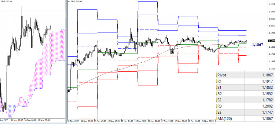 EUR/USD и GBP/USD 23 ноября – рекомендации технического анализаИнстаФорекс - Instaforex, 2 года назад EUR/USD Старшие таймфреймы Вчера инициативу перехватили игроки на повышение, остановив текущее снижение. В результате они вернулись в зону притяжения и влияния, образованную несколькими целевыми ориентирами старших таймов (1,0285 – 1,0385). При этом дневной краткосрочный тренд сегодня выдвинулся вперёд, чтобы помочь игрокам на повышение. Если бычьи настроения возобладают и позволят восстановить позиции, то после выхода из зоны притяжения внимание будет направлено на месячное сопротивление 1,0611. В случае неудачи можно ожидать снижение к недельному среднесрочному тренду 1,0163. Н4 – Н1 К настоящему моменту игроки на повышение сумели на младших таймфреймах подняться к сопротивлению недельной долгосрочной тенденции (1,0324). Данный уровень является ключевым и определяет действующий баланс сил. Если тестирование уровня закончится победой игроков на повышение, то к ним перейдёт основное преимущество, а ориентиры для продолжения подъёма сегодня можно будет обозначить на 1,0352 и 1,0397 (классические Пивот-уровни). Медвежий вариант в сложившихся условиях это отбой от 1,0324, переход на сторону игроков на понижение центрального Пивот-уровня (1,0283) и последующий выход из зоны, с помощью обновления и закрепления ниже минимального экстремума (1,0233). *** GBP/USD Старшие таймфреймы Консолидация в районе притяжения, объединивших свои усилия уровней 1,1781 – 1,1842 – 1,1895, продолжается. Поэтому озвученные ранее выводы и ожидания сохраняют свою актуальность. Для игроков на повышение ближайшими повышательными ориентирами при продолжении подъёма являются уровни дневной цели (1,2099 – 1,2292), усиленные месячным среднесрочным трендом (1,2302). Интересы игроков на понижение будут заключаться в преодолении дневных и недельных поддержек 1,1658 – 1,1544 – 1,1511 и так далее. Н4 – Н1 Ключевые уровни младших таймфреймов (центральный Пивот-уровень + недельная долгосрочная тенденция) сегодня соединились на рубеже 1,1867. Работа выше уровней будет отдавать предпочтение игрокам на повышение. Повышательные ориентиры можно отметить на 1,1917 – 1,1952 – 1,2002 (сопротивления классических Пивот-уровней). Работа ниже уровней будет отдавать предпочтение игрокам на понижение. Их ориентиры сегодня расположены на 1,1832 – 1,1782 – 1,1747 (поддержки классических Пивот-уровней). *** При техническом анализе ситуации используются: старшие таймфреймы – Ichimoku Kinko Hyo (9.26.52) + уровни Фибо Киджун Н1 – Pivot Points (классические) + Moving Avarage 120 (недельная долгосрочная тенденция) Материал предоставлен компанией InstaForex - www.instaforex.com |
