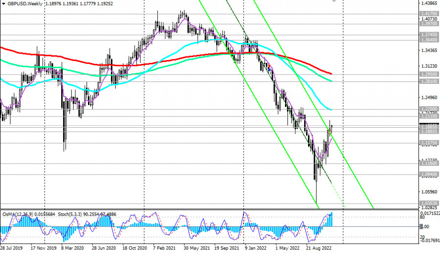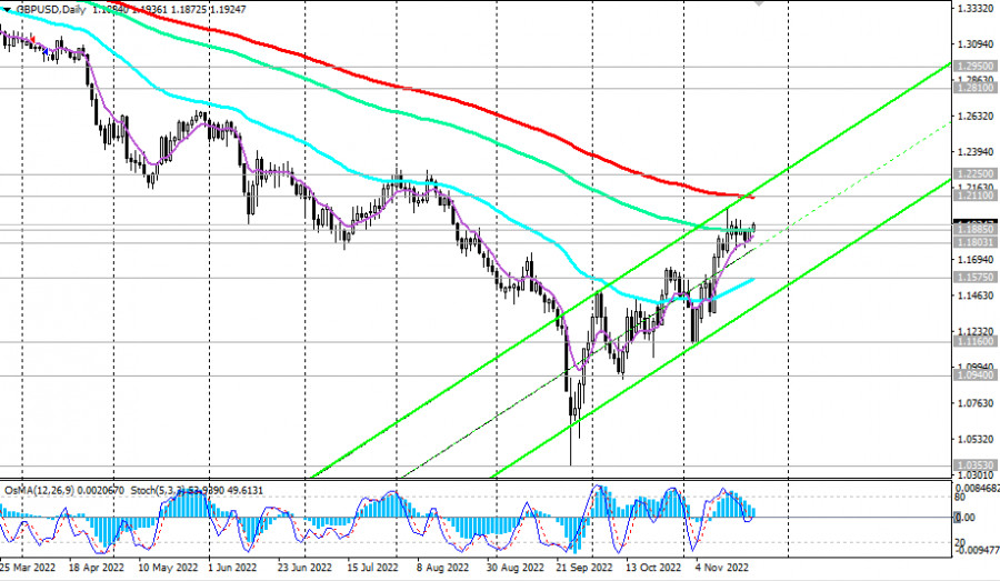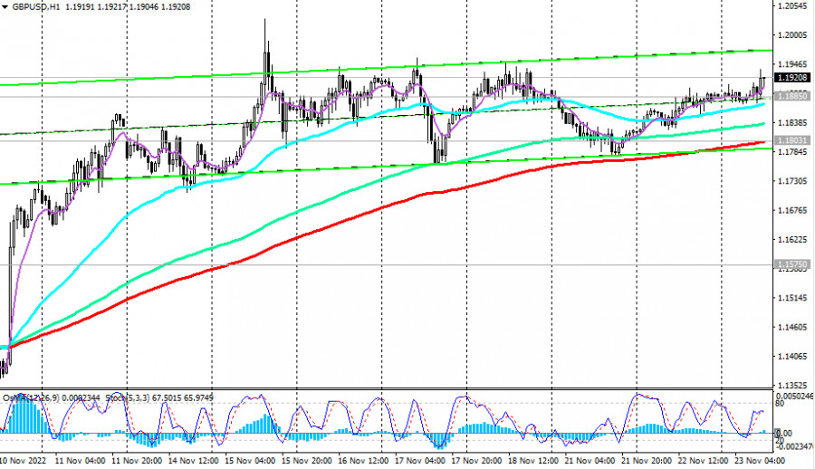 GBP/USD: технический анализ и торговые рекомендации на 23.11.2022ИнстаФорекс - Instaforex, 2 года назад Как мы отметили в нашем сегодняшнем «Фундаментальном анализе», «GBP/USD на момент публикации данной статьи торгуется вблизи отметки 1.1920, пытаясь удержаться в зоне выше долгосрочного уровня поддержки 1.1885 (ЕМА144 на дневном графике). «С конца сентября GBP/USD развивает восходящую динамику, пользуясь как слабостью доллара, так и на фоне предпринятых Банком Англии мер по поддержке рынка британских гособлигаций». С многолетнего минимума 1.0353, достигнутого 26 сентября, пара выросла на 15% (или почти на 1570 пунктов), и пока что она все еще находится в восходящем среднесрочном тренде, двигаясь внутри восходящего канала на дневном графике. Его верхняя граница проходит вблизи отметки 1.2110, через которую также проходит ключевой уровень сопротивления (ЕМА200 на дневном графике). Учитывая тот факт, что GBP/USD ниже этого уровня сопротивления остается в зоне долгосрочного медвежьего рынка, стоит ожидать отбоя вблизи него и возврата в нисходящий тренд. Впрочем, отбой может произойти уже вблизи уровня сопротивления 1.1885, если крупные покупатели доллара решат двигать его котировки выше, что также будет сопровождаться жесткой риторикой заявлений со стороны руководства ФРС относительно перспектив монетарной политики. Сегодня (в 19:00 GMT) будут опубликованы протоколы ноябрьского заседания ФРС, которые могут содержать дополнительную информацию относительно перспектив монетарной политики американского центрального банка. Стоит весьма внимательно отнестись к данному факту. Ниже уровней сопротивления 1.1885, 1.2110 GBP/USD остается в зоне долгосрочного медвежьего рынка, что делает предпочтительными короткие позиции. После пробоя поддержки на уровне 1.1885 дополнительным сигналом для входа в короткие позиции станет пробой важного краткосрочного уровня поддержки 1.1803 (ЕМА200 на 1-часовом графике). *) об особенностях торговли GBP/USD также см. в статье GBP/USD: валютная пара (характеристики, рекомендации) **) о важных событиях этой недели см. в Важнейшие экономические события недели 21.11.2022 – 27.11.2022 Уровни поддержки: 1.1885, 1.1803, 1.1575, 1.1500, 1.1400, 1.1300, 1.1200, 1.1160, 1.0940 Уровни сопротивления: 1.2000, 1.2110, 1.2250