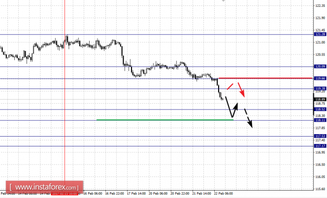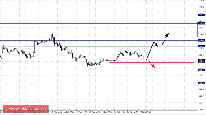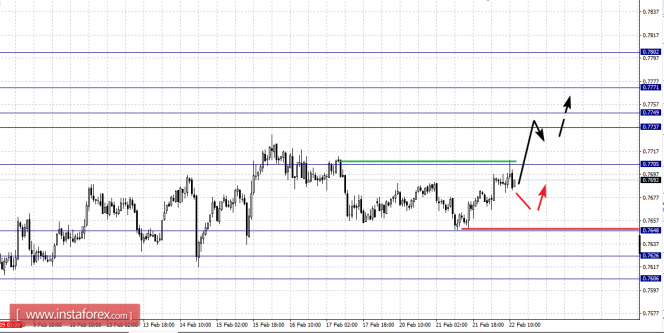 По паре Евро/Доллар ключевыми уровнями в масштабе Н1 являются: 1.0577, 1.0550, 1.0531, 1.0503, 1.0487, 1.0454 и 1.0429. Здесь мы следим за нисходящим циклом от 16 февраля. Продолжения движения книзу ожидаем после прохода ценой диапазона 1.0503 – 1.0487, в данном случае цель – 1.0454, возле этого уровня консолидация. Потенциальным значением для низа считаем уровень 1.0429, по достижении которого ожидаем уход в коррекцию. Краткосрочное восходящее движение возможно в коридоре 1.0531 – 1.0550, пробой последнего значения приведет к углубленному движению, здесь цель – 1.0577, этот уровень является ключевой поддержкой для низа, до него мы ожидаем оформления начальных условий для восходящего цикла. Основная тенденция – нисходящий цикл от 16 февраля. Торговые рекомендации: Buy: 1.0531 Take profit: 1.0550 Buy: 1.0552 Take profit: 1.0575 Sell: 1.0485 Take profit: 1.0455 Sell: 1.0452 Take profit: 1.0433 По паре Фунт/Доллар ключевыми уровнями в масштабе Н1 являются: 1.3093, 1.2947, 1.2860, 1.2742, 1.2621, 1.2518, 1.2398 и 1.2267. Здесь ситуация вошла в равновесную. Краткосрочное восходящее движение возможно в коридоре 1.2518 – 1.2621. Продолжения движения кверху ожидаем после пробоя 1.2621, в данном случае первая цель - 1.2742, пробой которой приведет к движению до 1.2860, в коридоре 1.2860 – 1.2947 краткосрочное восходящее движение и отсюда ожидаем разворот в коррекцию. Потенциальным значением для верха в масштабе Н1 рассматриваем уровень 1.3093. Краткосрочное нисходящее движение, а также консолидация, возможны в коридоре 1.2518 – 1.2398, пробой последнего значения приведет к развитию нисходящей структуры, в данном случае цель – 1.2267. Основная тенденция – равновесная ситуация. Торговые рекомендации: Buy: 1.2520 Take profit: 1.2620 Buy: 1.2625 Take profit: 1.2740 Sell: 1.2395 Take profit: 1.2270 Sell: Take profit: По паре Доллар/Франк ключевыми уровнями в масштабе Н1 являются: 1.0193, 1.0168, 1.0138, 1.0123, 1.0099, 1.0083 и 1.0057. Здесь мы следим за развитием восходящего цикла от 16 февраля. Продолжения движения кверху ожидаем после прохода шумового диапазона 1.0123 – 1.0138, в данном случае цель – 1.0168, возле этого уровня консолидация. Потенциальным значением для верха считаем уровень 1.0193, по достижении которого ожидаем уход в коррекцию. Краткосрочное нисходящее движение возможно в коридоре 1.0099 – 1.0083, пробой последнего значения приведет к углубленной коррекции, здесь цель – 1.0057, этот уровень является ключевой поддержкой для верха. Основная тенденция – восходящий цикл от 16 февраля. Торговые рекомендации: Buy: 1.0140 Take profit: 1.0168 Buy: 1.0170 Take profit: 1.0190 Sell: 1.0099 Take profit: 1.0085 Sell: 1.0080 Take profit: 1.0060 По паре Доллар/Иена ключевыми уровнями в масштабе являются: 116.12, 115.54, 114.43, 114.04, 112.98, 112.46 и 111.62. Здесь мы продолжаем следить за формированием восходящей структуры от 8 февраля, на текущий момент цена находится в глубокой коррекции. Продолжения движения кверху ожидаем после прохода ценой шумового диапазона 114.04 – 114.43, в данном случае цель – 115.54. Потенциальным значением для верха считаем уровень 116.12, по достижении которого ожидаем консолидацию. Краткосрочное нисходящее движение возможно в коридоре 112.98 – 112.46, этот диапазон является ключевой поддержкой для верха, его проход ценой будет располагать к развитию нисходящего движения, здесь первая потенциальная цель – 111.62. Основная тенденция – восходящая структура от 8 февраля, стадия глубокой коррекции. Торговые рекомендации: Buy: 114.50 Take profit: 115.50 Buy: 114.56 Take profit: 116.10 Sell: 112.95 Take profit: 112.48 Sell: 112.44 Take profit: 111.65 По паре Канадский доллар/Доллар ключевыми уровнями в масшт