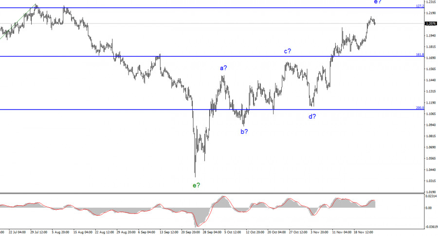 Анализ GBP/USD. 25 ноября. Куда еще дальше вверх? Хватит!ИнстаФорекс - Instaforex, 2 года назад 'По инструменту Фунт/Доллар волновая разметка на данный момент выглядит довольно сложно, но все еще не требует внесения уточнений. Мы имеем завершенный нисходящий участок тренда, который состоит из пяти волн a-b-c-d-e. Также мы имеем пятиволновой повышательный участок тренда, который принял вид a-b-c-d-e и тоже может быть уже завершен. Таким образом, я думаю, что повышение котировок инструмента может продолжаться еще некоторое время, но европейская валюта уже начала (предположительно) построение нового нисходящего участка, и британец должен последовать за ней. Новостной фон за последнее время можно было трактовать в любую сторону, так как оба центральных банка подняли свои процентные ставки, а в позапрошлую пятницу мы увидели падение доллара на том новостном фоне, который вполне мог привести к его новому росту (отчет Nonfarm Payrolls). Далее был отчет по инфляции, который снизил спрос на доллар, хотя могло бы быть и обратное явление. Повышение котировок в течение на этой неделе привело к усложнению внутренней волновой структуры волны e, но пока усложнилась только эта волна, а не весь участок тренда. Я допускал, что эта волна может принять более протяженный вид. Новостей нет, британец немного притормозилКурс инструмента Фунт/Доллар в течение 25 ноября снизился на 25 базовых пунктов. Амплитуда была очень низкой, однако при том новостном фоне, который сегодня был в распоряжении рынка, иначе быть и не могло. В течение дня ни одного отчета, ни одной новости. Таким образом, позитивная неделя для британца тоже заканчивается скучно. Скучно, но не грустно, так как фунт на этой неделе сумел вырасти на 200 базовых пунктов. Я не буду вновь рассуждать на тему, почему вырос спрос на британца. Экономическая статистика здесь явно не при чем. Однако и она могла повлиять на настроение рынка, и решение Верховного суда Великобритании. Хотелось бы перечислить еще несколько возможных причин, но с новостями на этой неделе было «все сложно». В Великобритании на следующей неделе полный штиль. На помощь могут прийти только США, где выйдут Nonfarm Payrolls и отчет ADP. Оба этих отчета показывают, как меняется динамика на рынке труда в США. К слову, в последние месяцы эта динамика не была негативной, валюта США может рассчитывать на улучшение ситуации для себя на следующей неделе. Однако это всего лишь один важный отчет (Nonfarm Payrolls), и выйдет он лишь в пятницу. Четыре дня до пятницы нужно тоже торговать, а один отчет ADP не сможет оказать сильного влияния на настроение рынка. По британцу волна e приняла достаточно протяженный вид, поэтому я жду ее завершения, а заодно и всего повышательного участка тренда. Заседания Банка Англии и ФРС еще нескоро, а все, кто мог, из членов денежно-кредитных комитетов уже высказались. Наступает режим тишины и скуки. Только волны могут помочь ориентироваться в пространстве. Общие выводыВолновая картина инструмента Фунт/Доллар предполагает построение нового понижательного участка тренда. Покупки инструмента я уже посоветовать не могу, так как волновая разметка допускает начало построения нисходящего участка тренда уже сейчас. Продажи сейчас более правильные с целями, находящимися около отметки 1,1707, что приравнивается к 161,8% по Фибоначчи. Однако волна e может принять еще более п
