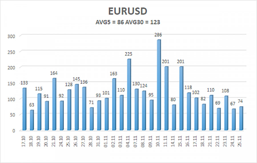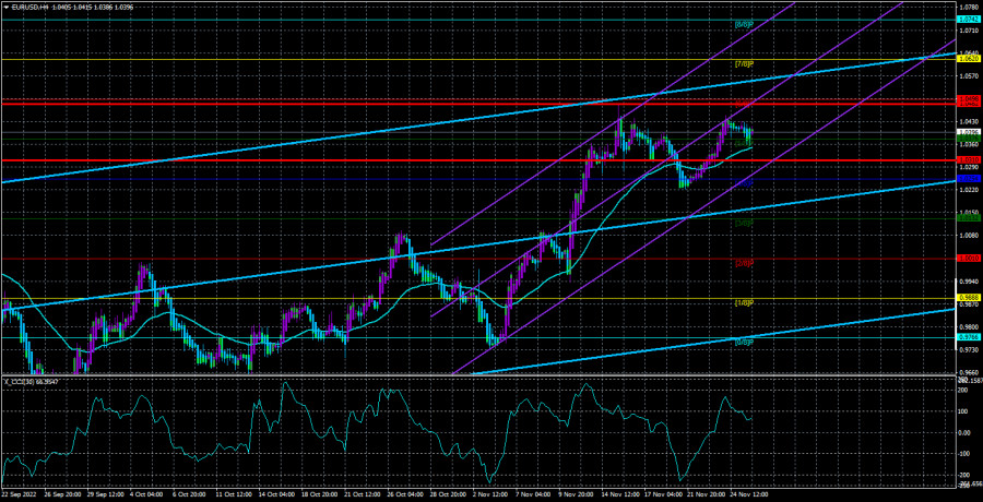 Обзор пары EUR/USD. 28 ноября. Начнет ли европейская инфляция наконец-то замедляться?ИнстаФорекс - Instaforex, 2 года назад Валютная пара EUR/USD в пятницу торговалась очень спокойно, не показав ни резких движений, ни волатильности, ни тренда. Тем не менее, по итогам дня пара осталась выше скользящей средней, а оба канала линейной регрессии направлены вверх. Поэтому с технической точки зрения рост европейской валюты абсолютно оправдан. Другой вопрос, что фундамент и макроэкономика явно не дают евровалюте столько поддержки, чтобы она росла практически без остановок. Однако эту тему мы уже не раз поднимали, ничего нового по этому поводу сказать сейчас нельзя. Мы много раз говорили о том, что любая фундаментальная гипотеза должна подкрепляться конкретными техническими сигналами. Если сигналов нет, то и отрабатывать такую гипотезу не стоит. Поэтому мы сколько угодно можем ждать коррекции, но, если большинство покупает евровалюту по любой причине, никакой коррекции не будет. Тем не менее, мы считаем, что коррекция все же может начаться в ближайшее время. Дело в том, что сейчас в принципе нет никаких фундаментальных и макроэкономических оснований для роста евровалюты. Их конечно можно «найти» или придумать, однако если этого не делать, то сложно сказать, почему, например, на прошлой неделе европейская валюта росла? Поэтому как бы там ни было, мы продолжаем ждать закрепления ниже скользящей средней линии и некоторого падения пары. Инфляция в ЕС – наиболее интересный отчет недели.На этой неделе с макроэкономическим фоном ситуация будет более интересной, чем на прошлой. В Евросоюзе уже в понедельник состоится выступление Кристин Лагард. Ее речи потихоньку вновь набирают значимости, так как приближается декабрь, в котором ЕЦБ проведет последнее заседание в этом году. Рынок в данное время ожидает повышения ставки еще на 0,75%, так как даже если инфляция и замедлится по итогам ноября, она вряд ли сможет вернуться к 2% при уровне ставки тоже 2%. Поэтому требуется еще несколько мощных повышений, о чем на прошлой неделе говорил Луис де Гиндос, вице-председатель ЕЦБ. Поэтому и от Лагард мы можем ожидать «ястребиной» риторики, которая чисто теоретически может поддержать евровалюту. «Теоретически», потому что рынок и без новой риторики Лагард уверен, что ставка будет продолжать расти максимальными темпами. ФРС нужно догонять по множеству причин. Во-первых, более высокая ставка за океаном создает дисбаланс денежных и инвестиционных потоков. Проще говоря, капиталы перетекают в США. Во-вторых, более высокая ставка ФРС повышает курс доллара, а евро, соответственно, падает. В-третьих, инфляция остается очень высокой, ее нужно снижать, а без высокой ставки этого не добиться. Поэтому нет смысла европейскому регулятору «тянуть резину», нужно повышать максимальными темпами. Собственно, уже в среду состоится публикация отчета по инфляции за ноябрь. Согласно прогнозам экспертов, индекс потребительских цен замедлится до 10,3-10,4% г/г, что можно будет считать первый шажочком к победе. Тем не менее, пока это лишь прогноз, он может и не сбыться. И здесь появляется один интересный момент. Напомним, что доллар США начал дешеветь против своих конкурентов примерно в то время, когда инфляция в США начала замедляться, то есть несколько месяцев назад. Можно сделать вывод, что снижение 