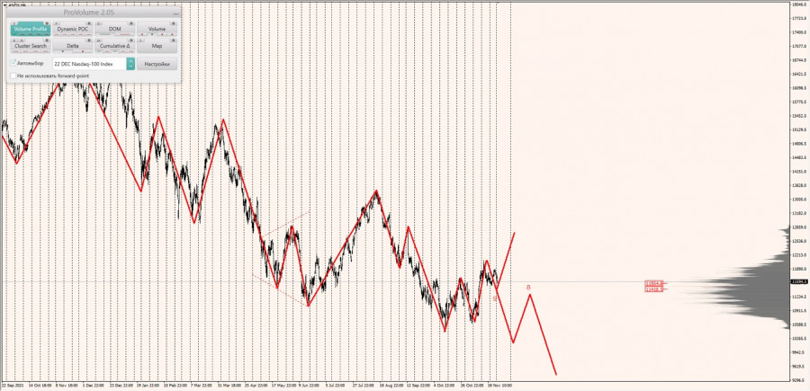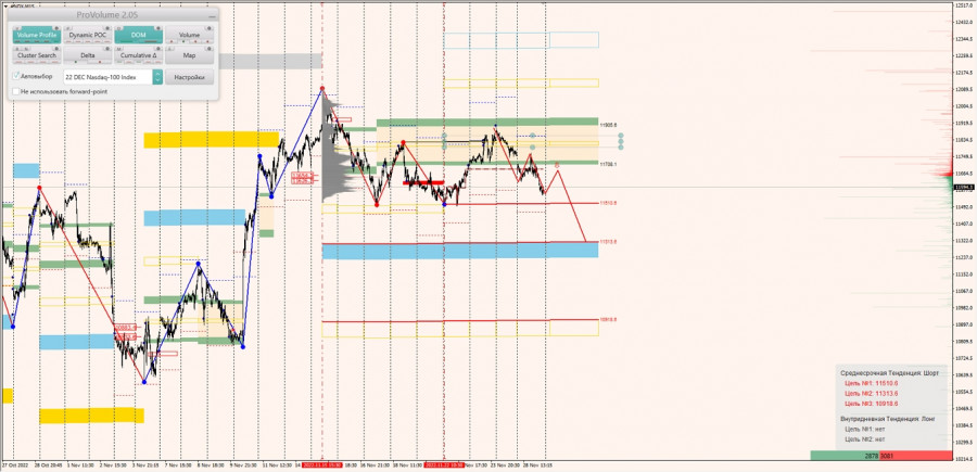 Среднесрочная тенденция: в шорт. Максимальное скопление объемов среднесрочной тенденции расположено в диапазоне по котировкам 11626.2-11654.3. В настоящий момент по Nasdaq совершаются инвестиционные операции ниже, указывая на силу продавцов.