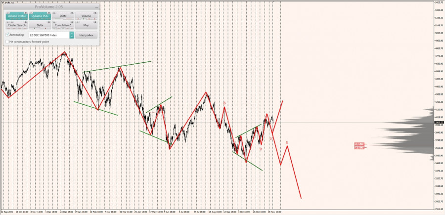 Альтернативный сценарий: при закреплении котировок индекса SNP500 ниже зоны 1/2 (3932.04) при откатах искать продажи по паттерну в новом диапазоне выгодных цен с целями обновление минимумов и тестирование верхней границы НКЗ (3836.64).