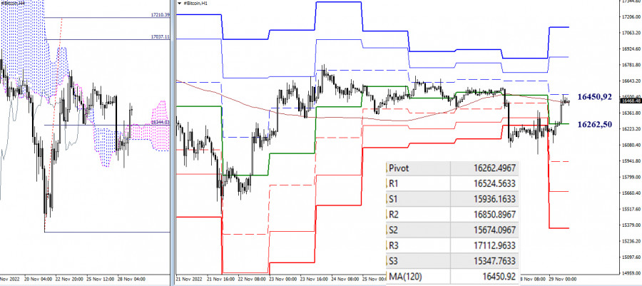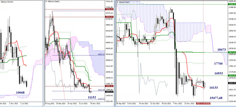 BITCOIN – технический анализ текущей ситуацииИнстаФорекс - Instaforex, 3 года назад Bitcoin Ранее биткоин оторвался от зоны притяжения сильного психологического уровня (20000) и спустился под первый целевой ориентир недельной цели на пробой облака Ишимоку (16933). Текущую поддержку движению сейчас оказывает дневной краткосрочный тренд (16133). Если в сложившихся условиях игроки на повышение смогут удержать ситуацию и продолжат коррекционный подъём, то повышательные ориентиры можно отметить на рубежах ближайших дневных и недельных уровней 16933 – 17766 – 18473. Если же поддержка дневного краткосрочного тренда (16133) будет пройдена, а следом удастся закрепиться ниже минимального экстремума (15477,68), то можно ожидать продолжение основного нисходящего тренда. Ориентирами для игроков на понижение в этом случае станут 11152 (100% отработка недельной цели) и 10068 (верхняя граница месячного облака). На младших таймах пара спустилась под ключевые уровни и сейчас выполняет их ретест. Ключевые уровни сегодня можно отметить на 16450,92 (недельная долгосрочная тенденция) и 16262,50 (центральный Пивот-уровень). Развитие подъёма в текущей ситуации будет строиться через преодоление сопротивлений классических Пивот-уровней (16524,56 – 16850,89 – 17112,96). Если медведи после тестирования недельной долгосрочной тенденции (16450,92) сохранят своё преимущество, то обновив минимум (16000,43) они могут продолжить снижение. Их внимание внутри дня будет направлено на тестирование поддержек классических Пивот-уровней (15936,16 – 15674,10 – 15347,76). *** При техническом анализе ситуации используются: старшие таймфреймы – Ichimoku Kinko Hyo (9.26.52) + уровни Фибо Киджун Н1 – Pivot Points (классические) + Moving Avarage 120 (недельная долгосрочная тенденция) Материал предоставлен компанией InstaForex - www.instaforex.com |