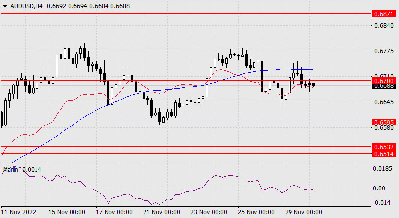 Прогноз по AUD/USD на 30 ноября 2022 годаИнстаФорекс - Instaforex, 2 года назад После сильного снижения «австралийца» в понедельник на 100 пунктов, во вторник цена в моменте перекрыла это падение понедельника, но закрытие дня произошло под сопротивлением 0.6700. «Медведи» победили. Вероятно, активность «быков» была связана со вчерашним ростом нефти (WTI 0,70%) и другого сырья. Теперь цена, в связи с выходом сегодня данных по занятости и ВВП в США, больше внимания обратит на европейские валюты.