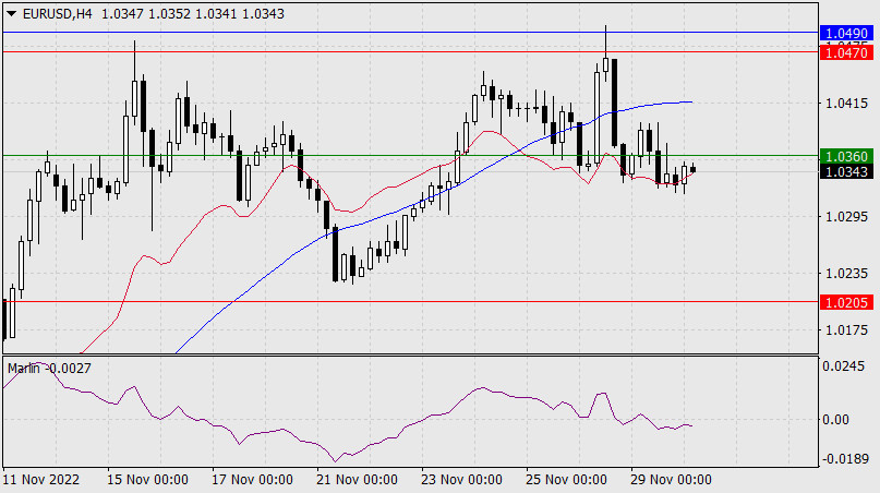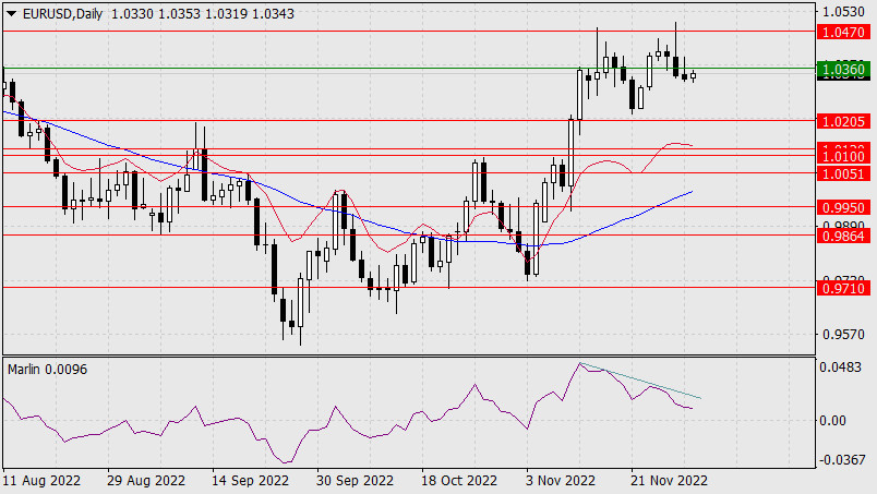 Прогноз по EUR/USD на 30 ноября 2022 годаИнстаФорекс - Instaforex, 2 года назад Во вторник евро предпринял слабую попытку возврата над верхнюю границу глобального диапазона (1.0360), после чего закрыл день понижением на 9 пунктов. В итоге с технической стороны ничего не изменилось, даже на меньших таймфреймах. Как и вчера, цена под давлением дивергенции на daily стремится к целевому уровню 1.0205.