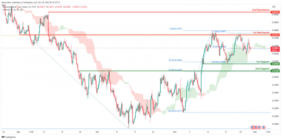 AUD/USD: ожидается усиление бычьего импульса. Прогноз на 30 ноября 2022ИнстаФорекс - Instaforex, 3 года назад На 4-часовом графике пара AUD/USD торгуется в бычьем тренде. Текущая цена находится выше облака Ишимоку, что указывает на восходящий импульс. Ожидается, что цена продолжит движение к 1-му уровню сопротивления 0.67711, соответствующему уровню Фибоначчи 61.8%. Если 1-й уровень сопротивления будет пробит, цена может направиться к 2-му уровню сопротивления 0.69161, где расположен предыдущий уровень свинг-хай. В качестве альтернативы цена может развернуться вниз и повторно протестировать 1-й уровень поддержки 0.65849, соответствующий уровню коррекции Фибоначчи 38.2%. Торговая рекомендация Вход: 0.66828 Условия для входа: 50% уровень коррекции Фибоначчи Тейк-профит: 0.65848 Условия для фиксации прибыли: 1-й уровень поддержки и предыдущий уровень свинг-лоу Стоп-лосс: 0.67711 Условия для активации ордера стоп-лосс: 1-й уровень сопротивления и предыдущий уровень свинг-хай Материал предоставлен компанией InstaForex - www.instaforex.com |