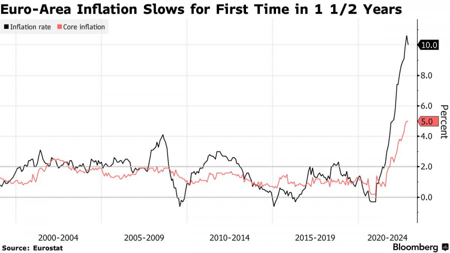 Рост инфляции в еврозоне замедлился впервые за 1,5 годаИнстаФорекс - Instaforex, 2 года назад Как показали сегодняшние данные, инфляция в еврозоне замедлилась впервые за 1,5 года, что дало проблеск надежды Европейскому центральному банку в его борьбе с высокими ценами. По данным Евростата, показатель за ноябрь опустился до 10%, что ниже прогноза экономистов в 10,4%. Падение с 10,6% в октябре стало самым большим с 2020 года и произошло благодаря более медленному росту цен на энергоносители и услуги – при этом, даже несмотря на более быстрый рост цен на продукты питания. Теперь прогнозируется повышение ставки лишь на 0,5% к концу года. Европейские облигации продолжили потери после публикации данных в среду: доходность двухлетних немецких облигаций выросла на шесть базисных пунктов до 2,17%. И хоть данные всего за один месяц, мерцающая перспектива ослабления ценового давления принесет облегчение ЕЦБ после полугодового разочарования цифрами, многократно превышающими прогнозы экономистов. Это совпадает со статистикой США за октябрь этого года, которая позволила и придала смелости некоторым чиновникам Федеральной резервной системы заговорить о снижении темпов повышения ставок. Наверняка сегодняшние данные были приятной новостью и для ЕЦБ. Напомню, что еще в понедельник президент ЕЦБ Кристин Лагард заявила Европейскому парламенту, что не удивилась бы, если бы узнала, что рост цен достиг своего пика и дальне начнется постепенно снижение. Ее заместитель Луис де Гиндос в этом месяце посетовал на предыдущие негативные сюрпризы, явно ссылаясь на фундаментальные отчеты, подчеркнув вчера, что сигналом, которому центральный банк должен продолжать следовать - снижение базовой инфляции. Скорей всего Гиндос говорил о базовой инфляции, которая не учитывает цены на энергоносители и продукты питания. Как показал отчет, этот показатель не изменился и составил рекордные 5%. Экономисты ЕЦБ явно будут использовать эти данные в качестве индикатора при подготовке новых квартальных экономических прогнозов. Учитывая траекторию инфляции, прогнозы, вероятно, покажут, как экономический шок, нанесенный региону, привел к снижению роста цен и к довольно высокой вероятности наступления рецессии. Что касается технической картины GBPUSD, то после вчерашней неудачной попытки быков вернуться в рынок сейчас их основной задачей является защита поддержки 1.1940. Для контроля над ситуацией нужно пробиться выше 1.2020, который они упустили еще вчера. Провыв 1.2020, укрепит надежду на дальнейшее восстановление в район 1.2100, после чего можно будет заговорить и о более резком рывке фунта вверх в район 1.2180 и 1.2230. Говорить о возврате давления на торговый инструмент можно после того, как медведи заберут контроль над 1.1940. Это нанесет удар по позициям быков и столкнет GBPUSD назад к 1.1870 и 1.1820. |