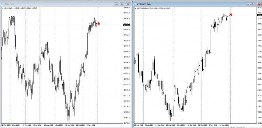 Американский рынок снижается перед вечерним выступлением ПауэллаИнстаФорекс - Instaforex, 2 года назад Акции упали, а трейдеры анализировали экономические данные и ждут выступления Джерома Пауэлла, чтобы получить подсказки о том, замедлит ли Федеральная резервная система темпы повышения ставок, чтобы предотвратить жесткую посадку. Несмотря на потери на фондовом рынке, S&P 500 все еще находится на пути к своему второму ежемесячному росту подряд — самой длинной полосе роста с августа 2021 года. Доходность облигаций выросла. Европейские фондовые индексы чувствуют себя более уверенно чем американские. особенно после выхода данных о падении инфляции в Еврозоне: Поскольку председатель ФРС готовится занять центральное место на мероприятии, запланированном на 21:30 мск, аналитики ожидают, что он напомнит американцам, что борьба центрального банка с инфляцией продлится до 2023 года «Мы не ожидаем чрезмерно воинственного тона, но если бы сегодня нам пришлось делать выбор в отношении потенциального сюрприза из комментариев Пауэлла, мы бы сказали, что более ястребиный сюрприз более вероятен, чем голубиный», — сказал Мэтт Мэйли. главный рыночный стратег Miller Tabak. Это не означает, что фондовый рынок будет «раздавлен», как это произошло после выступления Пауэлла в Джексон Хоуле в августе, добавил Мэйли. «Однако, учитывая то, что мы видим в качестве реальных целей ФРС прямо сейчас, сильное ралли в конце года менее вероятно, чем многие думают». Трейдеры также проанализировали множество экономических данных в четверг, при этом ключевые индикаторы активности в США рисовали неоднозначную картину в третьем квартале. Количество вакансий сократилось в октябре — обнадеживающий знак для ФРС, стремящейся обуздать спрос. Индекс Московской Биржи продолжает торговаться во флете третью неделю подряд: Новости на этой неделе: