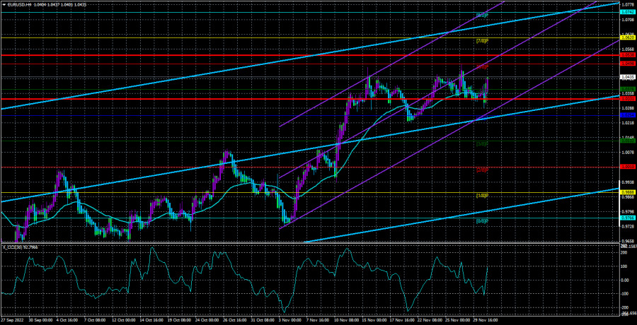 Обзор пары EUR/USD. 1 декабря. Рынок ушел в кому...ИнстаФорекс - Instaforex, 2 года назад Валютная пара EUR/USD в среду не показала абсолютно никакого желания двигаться. Если бы такая ситуация наблюдалась в понедельник или вторник, мы бы не удивились, так как в эти дни не было опубликовано ни одного отчета, не было ни одного важного события. Но в среду макроэкономической статистики было предостаточно, однако трейдеры полностью проигнорировали отчет по европейской инфляции, хотя он был не менее резонансным, чем последний отчет по американской инфляции, после которого началось такое ралли... Однако, в очередной раз убеждаемся, что европейская статистическая информация имеет очень слабое влияние на настроение трейдеров. Но в том то все и дело, что достаточно важные отчеты из-за океана вчера тоже были проигнорированы. Если с отчетом по ВВП все более или менее понятно, так как такие отчеты всегда выходят в трех оценках и после первой уже приблизительно ясно, чего ожидать от значения за тот или иной квартал, то отчет ADP мог бы спровоцировать реакцию рынка, тем более что он оказался очень слабым. А если рассмотреть всю полученную информацию и данные в общем, то вообще становится непонятно, почему рынок не нашел в них ничего интересного. Таким образом, пара остается недалеко от скользящей средней линии и пока вообще неясно, в какую сторону она собирается двигаться дальше. Мы уже полторы недели ожидаем сильной нисходящей коррекции, но для этого требуется закрепление хотя бы ниже мувинга. Формально закрепление мы увидели еще во вторник, но закрепление на 20 пунктов вряд ли можно считать уверенным. Мы большее внимание уделяем второму отскоку от уровня Мюррея «6/8» - 1,0498. Мы считаем, что два отскока от этого уровня могут означать начало коррекционного движения. Как видим, вчерашние данные никаких эмоций у трейдеров не вызвали, поэтому остается ждать только пятничных Нонфармов и безработицы... ВВП в США ускоряется в третьем квартале.Как мы же сами сказали выше, отчет по ВВП выходит обычно в трех оценках, поэтому трейдеры к публикации второй или третьей уже понимают, чего ожидать. Однако вчера этот отчет несколько удивил, так как при прогнозах +2,6-2,7% кв/кв фактическое значение составило 2,9%. Мы считаем, что это довольно сильное отклонение, и оно однозначно должно было помочь американской валюте. Но не только отчет по инфляции в ЕС был проигнорирован, даже достаточно важный ВВП с неожиданным значением был проигнорирован. Даже отчет ADP не вызвал никакой реакции. Поэтому хоть мы и считаем, что факторы поддержки американской валюты продолжают поступать в распоряжение трейдеров, они пока не горят желанием вновь покупать доллар. Таким образом, американская экономика показывает очень хорошую динамику в третьем квартале и может легко перекрыть «минусы» двух первых кварталов. Если это случится, тогда говорить о рецессии в экономике США действительно станет достаточно сложно, ФРС получит еще массу возможностей для повышения своей ставки настолько, насколько захочет, что опять-таки хорошо для доллара, так как, если инфляция вдруг перестанет снижаться, то у ФРС будут еще возможности ужесточить монетарную политику сильнее, чем предполагается сейчас. Более того, отсутствие рецессии – это уже сам по себе отличная новость для американской экономики. Как и для любой другой 