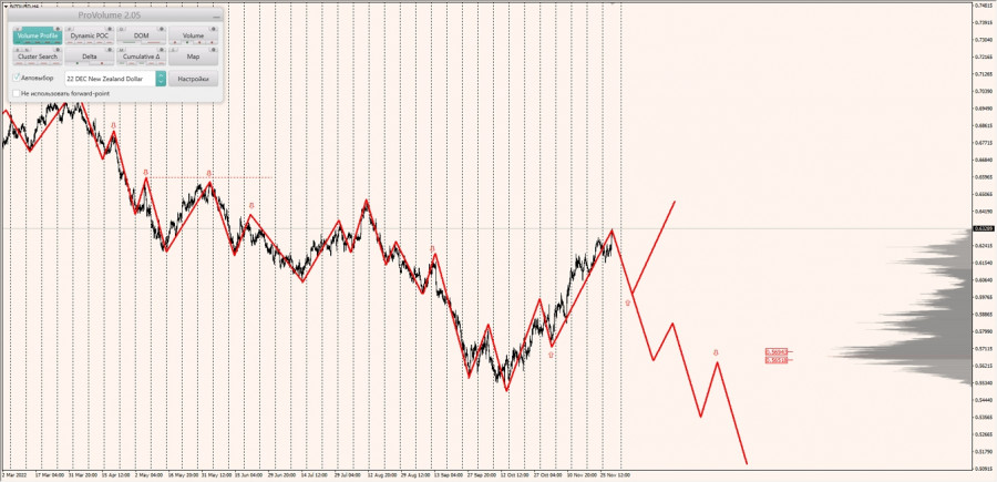 Долгосрочная тенденция: в лонг. Максимальное скопление объемов текущего контракта расположено в диапазоне по котировкам 0.56518-0.56943. В настоящий момент по паре совершаются инвестиционные операции выше, указывая на силу покупателей.