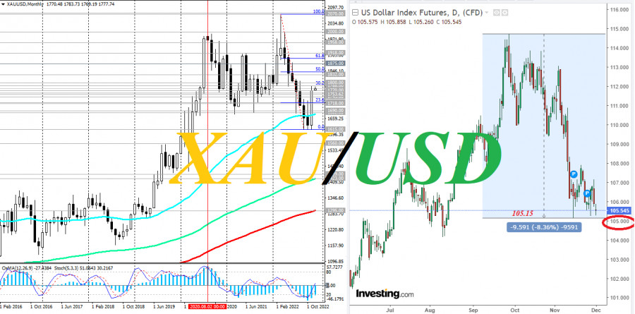 XAU/USD: возврат в зону бычьего рынка?ИнстаФорекс - Instaforex, 2 года назад Итак, после вчерашнего выступления Джерома Пауэлла (подробнее о динамике доллара после выступления Пауэлла см. в нашем сегодняшнем обзоре DXY: пустил ли Джером Пауэлл доллар «под откос»?) доллар продолжил слабеть в четверг, а цены на драгметаллы, в свою очередь, продолжили расти. Так, цена на золото развивает «бычий» импульс выше ключевых уровней поддержки 1759.00, 1770.00, двигаясь в сторону психологически значимого и локального уровня сопротивления 1800.00. Как известно, котировки золота крайнее чувствительны к изменениям в кредитно-денежной политике ведущих мировых центральных банков, и особенно ФРС. Учитывая высокие риски рецессии в экономике и продолжения роста инфляции, а также на фоне более мягкой риторики Джерома Пауэлла, цена на золото и пара XAU/USD продолжают расти, также пользуясь слабостью доллара. Золото не приносит инвестиционный доход, но пользуется активным спросом в ситуациях геополитической и экономической неопределённости, а также как защитный актив в условиях растущей инфляции (см. также XAU/USD: валютная пара (характеристики, рекомендации). Пробой ключевого уровня сопротивления 1759.00 ознаменовал собой возврат XAU/USD в зону долгосрочного бычьего рынка (о ближайших целях роста XAU/USD и альтернативный сценарий см. в «XAU/USD: технический анализ и торговые рекомендации на 01.12.2022»). А сегодня участники рынка обратят внимание на публикацию (в период времени с 13:30 по 15:00 GMT) целого блока важной макростатистики по США (подробнее см. в Важнейшие экономические события недели 28.11.2022 – 04.12.2022). Если она окажется позитивной, то это даст возможность покупателям доллара немного «перевести дух». А пока же доллар остается под давлением, ожидая также публикации в пятницу официального отчёта по рынку труда США за ноябрь. После более слабого отчета ADP с данными по числу новых рабочих мест, созданных в частном секторе американской экономики (занятость в ноябре улучшилась на +127 тыс. при прогнозе о росте на +200 тыс. и предыдущем значении +239 тыс.), участники рынка будут более осторожно относиться к публикации в пятницу официального отчета Минтруда США. И хотя первая пятница месяца, когда традиционно публикуются ежемесячные данные Минтруда США, часто называется трейдерами «днем зарплаты», наиболее осторожные из них, вероятно, предпочтут остаться в этот день вне рынка в связи с также традиционно ожидающимся резким ростом волатильности в период публикации данного отчета. *) наш счет в Forex-Copy системе -> Insta79 **) ссылка на сторонний Live-monitoring –> Insta79 ***) по вопросам стратегии и обучения -> https://t.me/fxrealist Материал предоставлен компанией InstaForex - www.instaforex.com |