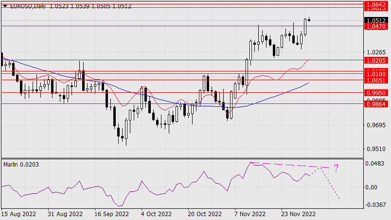 Прогноз по EUR/USD на 2 декабря 2022 годаИнстаФорекс - Instaforex, 2 года назад В ожидании сегодняшних данных по занятости в США, на фоне казалось бы не явно голубиного выступления Джерома Пауэлла, евро вчера подрос на 119 пунктов. Цена преодолела целевой уровень 1.0470, пик 28 ноября, теперь направляется в целевой диапазон 1.0015/42. Диапазон определён вершинами июня и мая. Пока цена придерживается нашего сценария с формированием дивергенции при достижении целевого диапазона.