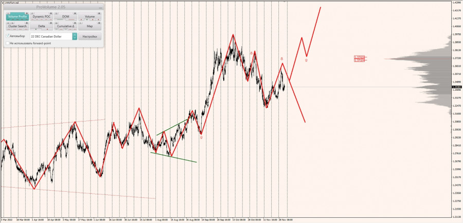 Долгосрочная тенденция: в шорт. Максимальное скопление объемов текущего контракта расположено в диапазоне по котировкам 1.37104-1.37424. В настоящий момент по паре совершаются инвестиционные операции ниже, указывая на силу продавцов.