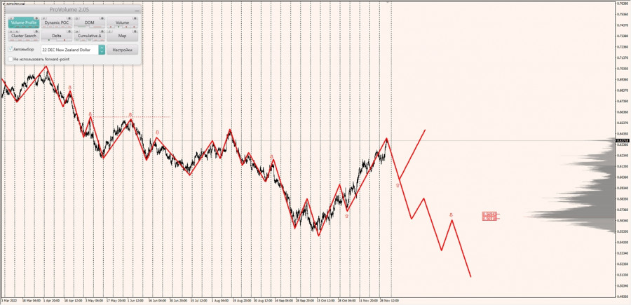Долгосрочная тенденция: в лонг. Максимальное скопление объемов текущего контракта расположено в диапазоне по котировкам 0.56518-0.56943. В настоящий момент по паре совершаются инвестиционные операции выше, указывая на силу покупателей.