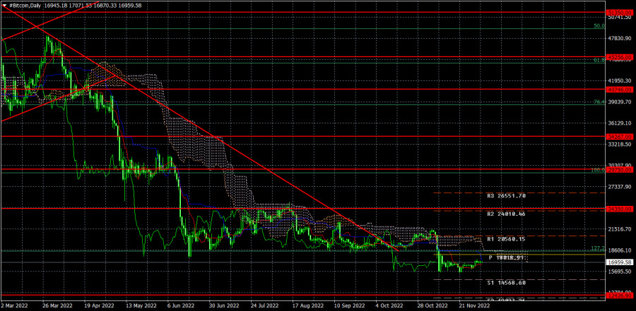 Фундаментальный фон для биткоина остается очень сложным.ИнстаФорекс - Instaforex, 2 года назад Криптовалюта биткоин закрепилась ниже уровня Фибоначчи 127,2% - 18 500$ и пока не предприняла ни одной попытки уйти обратно выше этого уровня, хотя прошло уже несколько недель. Этот момент доказывает лишь то, что быки на рынке по-прежнему отсутствуют. А раз отсутствуют быки, то биткоин в принципе не имеет сейчас шансов к росту. Конечно, он не будет стоять на одном месте, будут локальные периоды роста или падения, но в целом все пока идет по плану, который мы не раз озвучивали: обвал, несколько недель/месяцев флэта, новый обвал. И фундаментальный фон не только не способствует росту, он может значительно ухудшиться в ближайшее время. Первое, что нужно отметить, в декабре состояться новые заседания ЕЦБ, ФРС и Банка Англии. Рынок привык больше смотреть на ФРС, но напомним, что все три ЦБ продолжают ужесточать монетарные политики, что плохо для всех рисковых активов, а в особенности для биткоина. Помимо этого, Джером Пауэлл не так давно заявил, что ставка ФРС может расти дольше, чем прогнозировалось регулятором в сентябре, а оставаться на пиковом значении она также может гораздо дольше, чем ожидалось ранее. Таким образом, мы потенциально получаем более жесткую монетарную политику в ближайшей перспективе, а сохраняться она будет дольше, что опять-таки плохо для биткоина. Глобальный фундаментальный фон, как видим, абсолютно не способствует росту первой криптовалюты в мире. Также следует помнить, что крах биржи FTX – это не первый и не последний крах в криптовалютной индустрии. Мы уже говорили много раз, что, чем дольше цена на биткоин остается даже не на «дне», а ниже себестоимости добычи, тем выше вероятность, что падение его курса продолжится. Майнинговые компании будут сокращать объемы добычи. Различные криптовалютные компании – будут сокращать персонал. Доходы падают, кредиты все также нужно обслуживать, инвестиции падают, в общем может произойти крах всего рынка. Как тут не вспомнить лишний раз о том, что за биткоином нет никакой реальной стоимости. Это просто кусок кода, который не выполняет никаких реальных задач. Если акции какой-либо компании не могут упасть до нуля, то биткоин(в теории) очень даже может. В общем, мы продолжаем смотреть в криптовалютное будущее со скептицизмом. Может быть через год или два криптовалюта и начнет новый «бычий» тренд, но вряд ли в ближайшие месяцы. На 24-часовом таймфрейме котировки «битка» наконец-то предприняли удачную попытку преодоления уровня 18 500$. Теперь, с нашей точки зрения, падение может продолжаться с целью 12 426$. Как мы и предупреждали, преодоление нисходящей линии тренда не означает завершение «медвежьей» тенденции, так как параллельно цена находилась в боковом канале. Теперь нижняя граница этого канала преодолена, поэтому котировки могут продолжать падение. Материал предоставлен компанией InstaForex - www.instaforex.com |