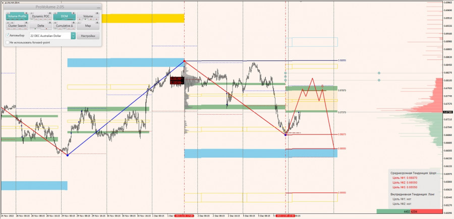 Среднесрочная тенденция: в шорт. Максимальное скопление объемов среднесрочной тенденции расположено в диапазоне по котировкам 0.68049-0.68146. В настоящий момент по паре совершаются инвестиционные операции ниже, указывая на силу продавцов.