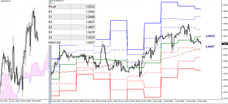 EUR/USD и GBP/USD 6 декабря – рекомендации технического анализаИнстаФорекс - Instaforex, 2 года назад EUR/USD Старшие таймфреймы Вчера игроки на повышение вошли в зону притяжения и влияния месячного уровня (1,0611). По итогу дня от встреченного сопротивления сформировался отбой. Если медвежьи настроения продолжат усиливаться, а отбой получит развитие и подтверждение не только на дневном тайме, но и на недельном, то возможна более глубокая смена приоритетов. Ближайшей поддержкой сегодня является дневной краткосрочный тренд (1,0442), далее при продолжении снижения пару ждёт встреча с месячным краткосрочным трендом (1,0302). Н4 – Н1 Благодаря дневному отбою пара на младших таймфреймах сейчас находится в нисходящей коррекции. При этом игроки на понижение оставили позади центральный Пивот-уровень дня (1,0522), который теперь выступает сопротивлением и является ориентиром на случай восстановления позиций игроками на повышение, другие сопротивления классических Пивот-уровней можно отметить на 1,0563 – 1,0637 – 1,0678. Ключевая поддержка младших таймов 1,0457 (недельная долгосрочная тенденция) в сложившейся ситуации служит основным понижательным ориентиром. Пробой и разворот мувинга способны изменить действующий баланс сил. *** GBP/USD Старшие таймфреймы На дневном тайме отработана цель на пробой облака Ишимоку (1,2292). Цель была усилена месячным среднесрочным трендом (1,2302). Итогом тестирования на дневном тайме стало формирование отбоя. Развитие отбоя и усиление медвежьих настроений приведёт пару сначала к поддержкам 1,2121 – 1,2099 (дневной краткосрочный тренд + первый целевой ориентир дневной цели), а далее к уровням дневного и месячного крестов Ишимоку (1,1840 – 1,1762). Н4 – Н1 На младших таймах идёт коррекционное снижение. Пара приближается к поддержке ключевого уровня – недельной долгосрочной тенденции (1,2146). Данный уровень отвечает за распределение сил. Работа выше мувинга обеспечивает основное преимущество игрокам на повышение. Закрепление ниже и разворот мувинга меняет баланс сил и отдаёт преимущество игрокам на понижение. Дополнительные поддержки в случае развития снижения сегодня можно отметить на 1,2118 – 1,2048 – 1,1935. *** При техническом анализе ситуации используются: старшие таймфреймы – Ichimoku Kinko Hyo (9.26.52) + уровни Фибо Киджун Н1 – Pivot Points (классические) + Moving Avarage 120 (недельная долгосрочная тенденция) Материал предоставлен компанией InstaForex - www.instaforex.com |