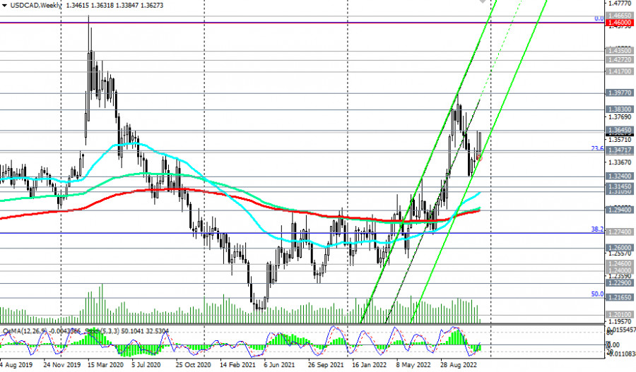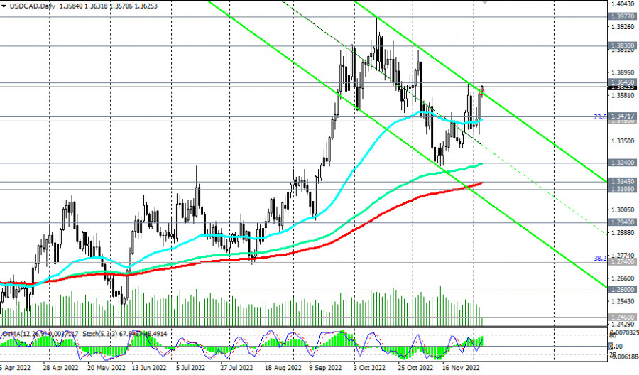 USD/CAD: технический анализ и торговые рекомендации на 06.12.2022ИнстаФорекс - Instaforex, 2 года назад Находясь выше ключевых уровней поддержки 1.3145 (ЕМА200 на дневном графике), 1.2940 (ЕМА200 на недельном графике), 1.2600 (ЕМА200 на месячном графике), USD/CAD остается в зоне долгосрочного бычьего рынка. Как мы отметили в сегодняшнем «Фундаментальном анализе», «основным событием в динамике канадского доллара и пары USD/CAD на этой неделе может стать завтрашнее заседание Банка Канады». В целом преобладает восходящая динамика, и если завтрашнее решение устроит быков по паре USD/CAD, то пробой недавнего локального максимума 1.3645 станет сигналом для наращивания длинных позиций. В этом случае USD/CAD направится в сторону верхней границы восходящего канала на недельном графике и к отметкам 1.4100, 1.4200, 1.4300 с промежуточными целями на отметках 1.3800, 1.3900. В альтернативном сценарии сигналом для возобновления коротких позиций станет пробой сегодняшнего минимума 1.3570 с ближайшей целью на уровнях поддержки 1.3471 (ЕМА200 на 4-часовом графике), 1.3450 3450 (ЕМА50 на дневном графике и уровень Фибоначчи 23,6% нисходящей коррекции в волне роста USD/CAD с уровня 0.9700 до уровня 1.4600). Пробой этих уровней поддержки может спровоцировать более глубокое снижение, вплоть до ключевых уровней поддержки 1.3240, 1.3145. В целом же преобладает бычий тренд USD/CAD, и, учитывая сильный восходящий импульс, логично все же предположить дальнейший рост. *) о событиях этой недели см. в Важнейшие экономические события недели 05.12.2022 – 11.12.2022). **) об особенностях торговли USD/CAD см. в «USD/CAD: валютная пара (характеристики, рекомендации» Уровни поддержки: 1.3570, 1.3500, 1.3471, 1.3450, 1.3400, 1.3240, 1.3145 Уровни сопротивления: 1.3645, 1.3700, 1.3800, 1.3830, 1.3900, 1.3977, 1.4000