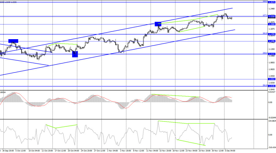 Вчера в Великобритании также был опубликован индекс деловой активности для сектора услуг. Он не изменился по итогу ноября и остался на значении 48,8. Таким образом, я не думаю, что падение котировок британца в первой половине дня было связано с этим отчетом. Как и небольшой рост, после отбоя от уровня 1,2238. Во второй половине дня, как я уже говорил, вышел достаточно сильный индекс ISM в Америке, который помог доллару продолжить рост внутри дня. Однако уже сегодня в Великобритании и США информационный фон отсутствует, и до конца недели нас ждет всего лишь несколько отчетов, которые имеют шансы на то, чтобы повлиять на движение пары фунт-доллар.