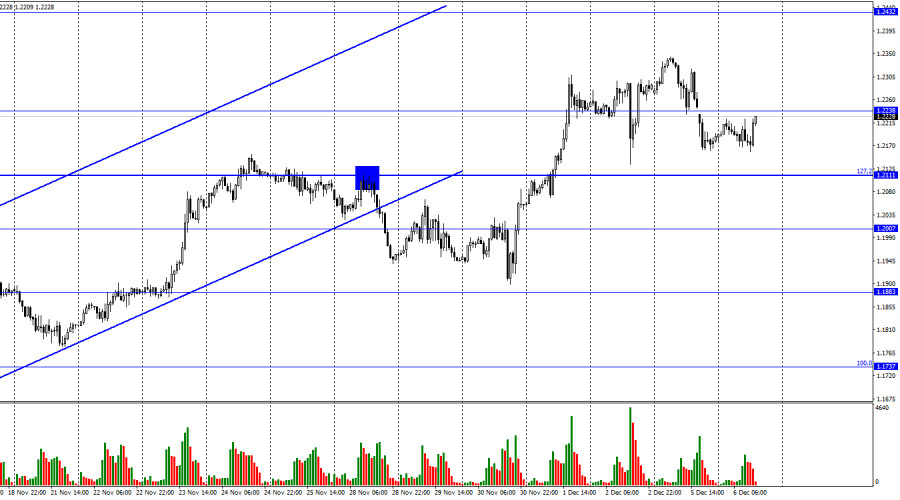 GBP/USD. 6 декабря. Британец опустился ниже уровня 1,2238 и может продолжить падение