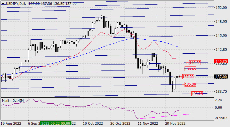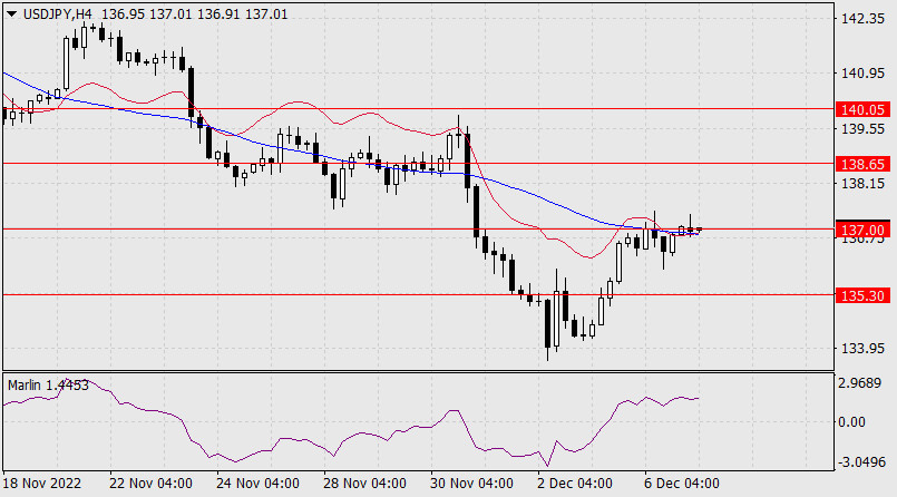 Прогноз по USD/JPY на 7 декабря 2022 годаИнстаФорекс - Instaforex, 2 года назад Пара USD/JPY продолжает развивать коррекцию последних двух дней. Вчера, столкнувшись с ближайшим сопротивлением вложенной линии ценового канала старшего таймфрейма (137.00), цена показала рост лишь на 28 пунктов. С осциллятором Марлин сформирована конвергенция, рост может получить продолжение. Ближайшей целью выступает линия с отметкой 138.65. Если уровень будет преодолён, возможен рост до 140.05. Чуть выше этой второй цели находится уровень 140.35 – минимум 22 сентября. Возможно, цена попытается дотянуться и до него. На четырёхчасовом масштабе цена вышла над линию Крузенштерна, даже с небольшим закреплением. Осциллятор Марлин в положительной области. Краткосрочная тенденция растущая, ждём цену у ближайшего уровня 138.65. Материал предоставлен компанией InstaForex - www.instaforex.com |