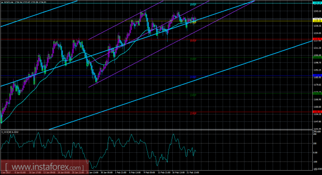 Техническая картина инструмента GOLD по системе «Каналы регрессии» за 23 февраля 2017 годаИнстаФорекс - Instaforex, 8 лет назад 4-часовой таймфрейм Технические данные: Старший канал линейной регрессии: направление – вверх Младший канал линейной регрессии: направление – вверх Скользящая средняя (20; сглаженная) – вбок CCI: 6.3317 Пояснения: Техническая картина золота 23 февраля показывает, что цена располагается чуть выше мувинга и не может пока продолжить движение вверх. Старший канал направлен вверх, что свидетельствует о восходящем направлении движения глобального тренда. Младший канал также направлен вверх, что означает восходящее направление движения и в среднесрочном плане. Сейчас цена находится выше мувинга и выше уровня Мюррея «7/8», что указывает на восходящее направление движения в ближайшие дни. Первой целью для движения вверх, таким образом, остается уровень Мюррея «8/8» - 1250,00. Если первый таргет будет преодолен, то новой целью будет являться уровень Мюррея «+1/8» - 1265,63. Мувинг направлен вбок, а цена находится чуть выше него, поэтому сейчас более вероятно восходящее движение. Хайкен Аши окрасил последние бары в фиолетовый цвет, что сигнализирует о локальном восходящем движении. Разворот индикатора вниз просигнализирует о новом витке нисходящей коррекции, а ордера на покупку станут вновь недоступными для открытия. Шорты можно будет рассматривать только ниже скользящей средней линии и после разворота любого канала вниз. Индикатор CCI находится около нулевого уровня, что сигнализирует об отсутствии любой перекупленности и перепроданности инструмента. Ближайшие уровни поддержки: S1 – 1234,38 S2 – 1218,75 S3 – 1203,13 Ближайшие уровни сопротивления: R1 – 1250,00 R2 – 1265,63 R3 – 1281,25 Торговые рекомендации: Исходя из анализа движения курса золота, можно сделать вывод, что сейчас рекомендуется рассматривать длинные позиции с целью 1250,00. Второй актуальной целью выступает уровень 1265,63. Уровень стопа рекомендуется располагать ниже мувинга и по мере его повышения переносить вверх и стоп лосс. При прохождении 1000-1500 пунктов, стоп лосс можно переносить на нулевой уровень. Закрывать вручную лонги можно будет в случае окраса индикатором Хайкен Аши 1-2 баров (в зависимости от размера) в голубой цвет или при закреплении цены ниже мувинга. T/P можно размещать чуть ниже ближайших целей. Короткие позиции рассматривать не рекомендуется. Учитывая снижение волатильности, некоторое время можно не заходить в рынок. Помимо технической картины следует также учитывать фундаментальные данные и время их выхода. Пояснения к иллюстрации: Старший канал линейной регрессии – голубые линии однонаправленного движения. Младший канал линейной регрессии – фиолетовые линии однонаправленного движения. CCI – голубая линия в окне индикатора. Скользящая средняя (20;сглаженная) – голубая линия на графике цены. Уровни Мюррея – разноцветные горизонтальные полосы. Хайкен Аши – индикатор, окрашивающий бары в голубой или фиолетовый цвета.Материал предоставлен компанией InstaForex - www.instaforex.com |
