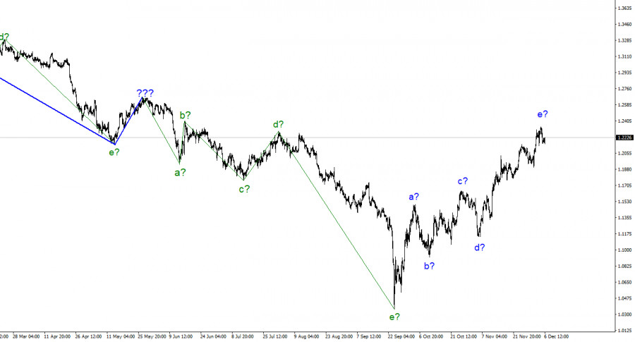 Анализ GBP/USD. 7 декабря. Британец продолжает наслаждаться жизньюИнстаФорекс - Instaforex, 2 года назад По инструменту Фунт/Доллар волновая разметка на данный момент выглядит довольно сложно, но все еще не требует внесения уточнений. Мы имеем пятиволновой повышательный участок тренда, который принял вид a-b-c-d-e и может быть уже завершен. Таким образом, я думаю, что повышение котировок инструмента может продолжаться еще некоторое время. Я считаю, что оба инструмента по-прежнему находятся в стадии построения повышательного участка тренда, после чего начнется обоюдное понижение. Новостной фон для британца в последние недели был настолько разнообразным, что даже сложно его охарактеризовать одним словом. У британца было достаточно причин и повышаться, и снижаться. Как видим, он выбирал и выбирает по сей день в основном только первый путь. Повышение котировок в течение позапрошлой недели привело к усложнению внутренней волновой структуры волны e, на прошлой неделе – к еще большему усложнению, а в начале текущей недели британец продолжает себя чувствовать просто прекрасно и даже коррекционную волну не хочет построить. По обоим инструментам волновая разметка допускает завершение построения восходящего участка в любой момент, поэтому пока я все еще жду снижения обоих инструментов, однако эти участки тренда вполне могут принять и еще более протяженный вид. Спрос на валюту Великобритании остается высокимКурс инструмента Фунт/Доллар в среду повысился на 70 базовых пунктов. И это повышение инструмента не имеет практически никакого значения для текущей волновой разметки. Вчера я говорил, что снижение на 100 пунктов британца за последние два дня – слишком слабое, чтобы делать выводы о завершении предполагаемой волны e и всего повышательного участка тренда. Так вот, сегодняшнее повышение обнуляет достижение доллара последних дней, которое даже вчера нельзя было назвать убедительным. Инструмент продолжает торговаться около своих пиковых значений, а новостной фон на этой неделе очень скудный. Сегодня и вчера вообще не было никаких новостей, касающихся британца или американца. Поэтому чередования «вверх-вниз» вполне ожидаемы. Рынок уже начал готовится к будущим заседаниям центральных банков, но я бы хотел уже немного отойти от этой темы, так как все, что можно было, уже давно сказано и написано по этому вопросу. Предлагаю просто дождаться самих заседаний и посмотреть, какие решения будут приняты. Исходя из текущей волновой разметки, они должны быть такими, чтобы спрос на валюту США начал расти. А для этого либо риторика и решения ФРС должны быть «ястребиными», либо риторика и решения Банка Англии (ЕЦБ) должны быть «голубиными». Получить подобный результат можно будет только в том случае (на мой взгляд), если ЕЦБ и Банк Англии неожиданно откажутся продолжать повышать процентную ставку шагом в 75 базисных пунктов. Рынок сейчас не имеет единого мнения по этому вопросу и допускает, что ставка может вырасти на три четверти пункта. Если этого не случится, это может стать тем толчком для рынка, когда он начнет повышать спрос уже на доллар. В пользу этого говорит и волновой анализ. Общие выводыВолновая картина инструмента Фунт/Доллар предполагает построение нового понижательного участка тренда. Покупки инструмента я уже посоветовать не могу, так как в