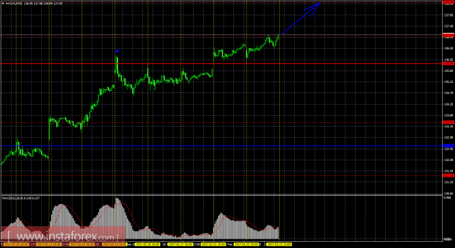 Технический и свечной анализ акций Apple на 23 февраля 2017 годаИнстаФорекс - Instaforex, 8 лет назад 4-часовой таймфрейм 15-минутный таймфрейм Техническая картина: Анализируя акции компании Apple 23 февраля, видим, что цена продолжает несильное восходящее движение и отработала первый таргет. Текущий «золотой крест» является сильным (так как цена располагается выше облака), поэтому длинные позиции индикатор Ишимоку разрешает рассматривать. Старший канал линейной регрессии направлен вверх, младший канал также направлен вверх, поэтому ордера на покупку актуальны и по этому признаку. Целью для восходящего движения инструмента является первый уровень сопротивления 137,01, который уже достигнут. Второй целью для движения вверх выступает уровень сопротивления 138,36. Сформировалась новая «бычья» модель «Харами», которая поддерживает движение вверх. MACD по-прежнему направлен вниз, продолжая разряжаться, так как цена при этом не понижается. Стохастик находится в области перекупленности, что сейчас свидетельствует о восходящем настроении участников рынка и отсутствии коррекции. Отскок цены от уровня 137,01 может спровоцировать виток коррекционного движения. Младший таймфрейм детализирует картину старшего таймфрейма. На младшем графике также видно, что цена по-прежнему располагается выше линии Тенкан-сен и сохраняет перспективы движения вверх. Лонги сейчас сохраняют свою актуальность с целью уровень сопротивления 138,36, при закреплении цены выше уровня 137,01. Торговые рекомендации для 4-часового таймфрейма: Цена акций Apple продолжает движение вверх. На текущем графике рекомендуется рассматривать длинные позиции с целью 137,01. В случае преодоления этого уровня, таргетом будет выступать 138,36. Закрывать ордера на покупку рекомендуется в случае формирования «медвежьей» модели (с подтверждением), при отскоке цены от первого таргета или при развороте индикатора MACD вниз (при параллельном понижении цены). Стоп лосс при торговле на повышение выставляем ниже критической линии 132,56. Ордера на продажу сейчас не актуальны. Торговые рекомендации для 15-минутного таймфрейма: На 15-минутном графике рекомендуется рассматривать ордера на покупку с целью 138,36, при закреплении цены выше 137,01, ордером Stop Loss ниже 137,01. Индикатор MACD сейчас часто разряжается. Помимо технической картины следует также учитывать фундаментальные данные и время их выхода. Не рекомендуется переносить открытые сделки на следующую торговую сессию из-за вероятности образования гэпа или же обязательно выставлять ордер стоп лосс. Сигналы, полученные от свечных моделей наиболее сильны, когда совпадают с другими сигналами (отскок, закрепление, MACD) или требуют своего подтверждения. Пояснения к иллюстрации (график 1): Индикатор Ишимоку: Тенкан-сен – красная линия. Киджун-сен – синяя линия. Сенкоу Спан А – светло-коричневая пунктирная линия. Сенкоу Спан Б – светло-фиолетовая пунктирная линия. Чинкоу Спан – зеленая линия. Старший канал линейной регрессии – голубые линии однонаправленного движения. Младший канал линейной регрессии – фиолетовые линии однонаправленного движения. Индикатор MACD - красная линия и гистограмма с белыми барами в окне индикаторов. Красные горизонтальные пунктирные линии – уровни поддержки и сопротивления. Индикатор Stochastic – голубая и красная пунктирные линии в окне индикаторов. 