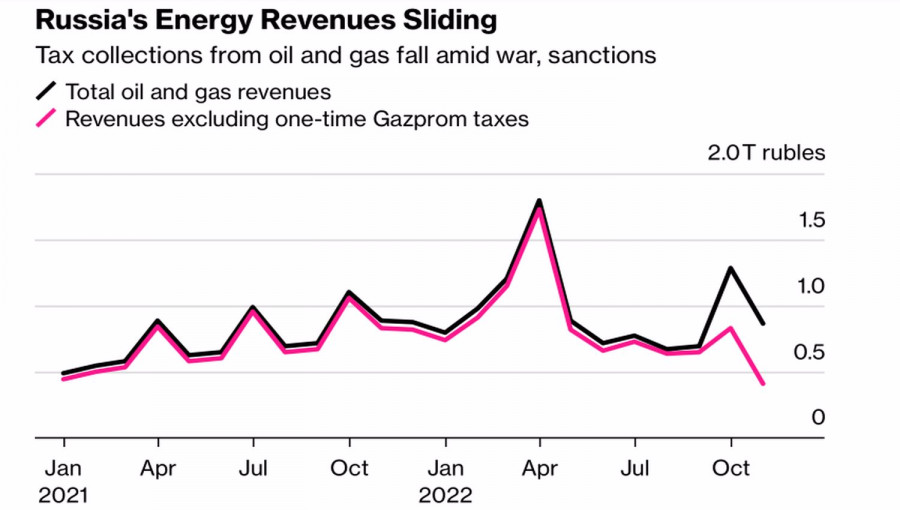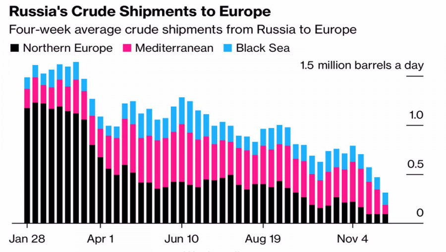 Рубль: казнить, нельзя помиловатьИнстаФорекс - Instaforex, 2 года назад Что первично – курица или яйцо? Влияют ли санкции на рубль? Или по динамике рубля можно понять, насколько серьезно меры воздействия Запада изменят российскую экономику? С начала вооруженного конфликта на Украине пара USDRUB резко взмыла вверх из-за опасений, что санкции ее угробят. Однако понимание того, что к ним можно и приспособиться, что не так страшен черт, как его малюют, сделало рубль лучшей валютой на Forex в 2022. Его ослабление на исходе года – тоже результат ограничительных мер. Смеется тот, кто смеется последним. На первый взгляд, введенный ЕС потолок цен для российской нефти в $60 за баррель выглядит формальностью. Себестоимость добычи оценивается в $40, основной сорт Urals торгуется чуть ниже отметки $50 за баррель. Разве может валютная выручка упасть? Да, в Азию поставляются другие сорта, более дорогие, однако ни Китай, ни Индия пока не собираются исполнять требования G7. Такой подход не учитывает три аспекта. Во-первых, Пекин и Дели могут поторговаться о более низких ценах. Во-вторых, морские потоки российской нефти в Европу, оцениваемые в довоенный период в 1,5 млн б/с, близки к тому, чтобы упасть до нуля. В-третьих, бюджет РФ будет сбалансирован при цене нефти в $70 за баррель. Динамика морских потоков российской нефти в Европу Для того чтобы закрыть дыру в бюджете, необходимо использовать средства Фонда национального благосостояния, выпускать долговые обязательства или ослабить рубль. Полагаю, что Москва будет исходить из принципа всего понемногу, поэтому рост котировок USDRUB выглядит логично. Тем более что, если черное золото продолжит падать, как оно это делает сейчас на опасениях приближения рецессии американской и мировой экономики, валютная выручка РФ сократится еще больше. Независимо от установленного потолка. По оценкам Bloomberg, из-за эмбарго ЕС и предела цен в $60 за баррель для российской нефти бюджетные доходы Москвы сократятся на 1% от ВВП, что приведет к спаду экономики в 3%. Динамика налоговых доходов бюджета РФ от продажи нефти и газа Таким образом, по мере сокращения валютной выручки и снижения доходов бюджета правительство будет все больше заинтересовано в ослаблении рубля. При этом санкции, включая эмбарго и ценовой потолок, уже не является фактором неопределенности. Поэтому котировки USDRUB будут более чутко реагировать на динамику нефти и газа на мировых рынках. Раннее открытие Китая или похолодание в Европе могут стать более значимым драйвером укрепления рубля, чем, например, повышение ключевой ставки ЦБ РФ. Которую, к слову, не имеет смысл поднимать, ведь, согласно прогнозу экспертов Bloomberg, инфляция в ноябре замедлилась с 12,6% до 12%. Технически реализация паттерна Всплеск и полка позволила «быкам» по USDRUB вывести котировки за пределы торгового диапазона 59,5–61,5. При этом отыгрыш внутреннего бара даст основание нарастить от уровня 63,35 ранее сформированные лонги. В качестве таргетов восходящего движения выступают отметки 64,5 и 66,4, Материал предоставлен компанией InstaForex - www.instaforex.com |