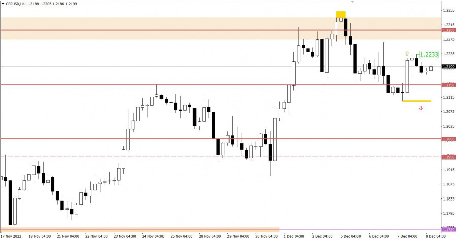 Вчера были опубликованы данные по ВВП в Европе, где, по третьей оценке, в третьем квартале экономика выросла на 2,3% в годовом выражении и на 0,3% – в квартальном, исходя из полученных данных европейским статистическим агентством (Евростат). Напоминаю, что предварительная оценка ВВП предполагала рост на 2,1% в годовом выражении и на 0,2% в квартальном. Во втором квартале рост экономики составлял 4,2% в годовом выражении и 0,8% в квартальном. Расхождение ожиданий в пользу роста ВВП сыграло в пользу евро. Разбор торговых графиков от 7 декабряЕвро по отношению к доллару США в ходе непродолжительного колебания цены ниже уровня 1.0500 вновь перешел к росту. Вследствие чего возник локальный всплеск на длинные позиции, которые привел к обратному ходу выше уровня 1.0500. Валютная пара GBPUSD завершила стадию застоя чуть ниже уровня 1.2150 восходящим импульсом. В ходе которого котировка поднялась выше отметки 1.2200, указывая на рост объема длинных позиций по фунту стерлингов. Экономический календарь на 8 декабряСегодня ожидается публикация еженедельных данные по заявкам на пособие по безработице в Соединённых Штатах, где прогнозируют сокращение их общего объема. Это положительный фактор для рынка труда США, в случае если прогнозы о сокращение заявок совпадут. Детали статистических данных:Объем повторных заявок на пособие может сократиться с 1 608 тыс. до 1 575 тыс. Объем первичных заявок на пособие может незначительно увеличиться с 225 тыс. до 230 тыс. Временной таргетинг Заявки на пособие по безработице в США – 16:30 по МСК Торговый план – ЕВРО/ДОЛЛАР 8 декабряВ данной ситуации особое внимание уделено двум значениям: 1.0550 – это максимум минувшего дня, и 1.1430 – переменный уровень опоры. Удержание цены за пределами того или иного значения в четырехчасовом периоде вполне может указать на дальнейший путь цены. До тех пор возможна переменная болтанка внутри заданных значений. Торговый план – ФУНТ/ДОЛЛАР 8 декабряМожно предположить, что стабильное удержание цены выше отметки 1.2200 в перспективе может усилить восходящий ход. В этом случае котировка вполне может устремиться в сторону максимума восходящего цикла, это значение 1.2343. В противном случае может возникнуть амплитудный ход вдоль уровня 1.2150, что укажет на характерную неопределенность трейдеров в последующем движение. Что отражено на торговых графиках?