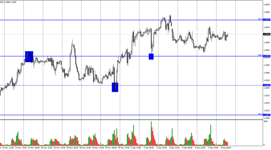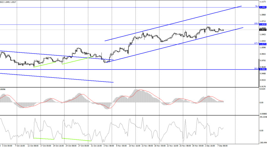 EUR/USD. 8 декабря. Тягостная неделя продолжаетсяИнстаФорекс - Instaforex, 2 года назад Добрый день, уважаемые трейдеры! Пара EUR/USD в среду выполнила разворот в пользу валюты ЕС и некоторый рост в направлении коррекционного уровня 161,8% - 1,0574. Однако до этого уровня добраться она не смогла и в четверг немного откатилась вниз. Сейчас она находится точно между уровнями 1,0430 и 1,0574 и на этой неделе не показывает движений в каком-то определенном направлении. Небольшие периоды роста просто чередуются с такими же периодами падения. Если заглянуть в календарь экономических событий, то ответ на вопрос, почему мы наблюдаем такие движения, становится понятным. На этой неделе было несколько интересных отчетов, которые даже оказались небезынтересными трейдерам, но все же они были не настолько сильными, чтобы рассчитывать на движение в одном направлении. В понедельник небольшое преимущество было у доллара США, когда индекс ISM вырос, а не упал, как ждали того многие, а вчера преимущество было уже у европейской валюты, так как отчет по ВВП Евросоюза в третьем квартале оказался чуть лучше, чем ожидали многие трейдеры. Вот мы и наблюдаем движения на 60-80 пунктов то вверх, то вниз. Сегодня должно состояться два выступления Кристин Лагард, но все последние ее выступления были довольно пресными. Если бы президент ЕЦБ заявил, что, например, ЕЦБ будет повышать ставку на 0,75% еще два или три заседания подряд, это могло бы направить пару вверх на ближайшие несколько недель. Если бы Лагард заявила, что уже в декабре ставка начнет замедляться, это могло бы сформировать Южное направление пары. Но она не говорит ничего конкретного, кроме необходимости продолжать повышать ставки, чтобы подавлять дальнейший рост инфляции. Трейдеры уже имели достаточно времени, чтобы учесть эту информацию, а новой информации нет. На 4-часовом графике пара продолжает процесс роста в направлении коррекционного уровня 100,0% - 1,0638. Отбой котировок от этого уровня сработает в пользу американской валюты и некоторого падения в направлении уровня Фибо 127,2% - 1,0173. Закрепление курса пары над уровнем 1,0638 повысит шансы на дальнейший рост в направлении уровня 1,1041. Восходящий трендовый коридор сейчас характеризует настроение трейдеров как «бычье». Отчет Commitments of Traders (COT):