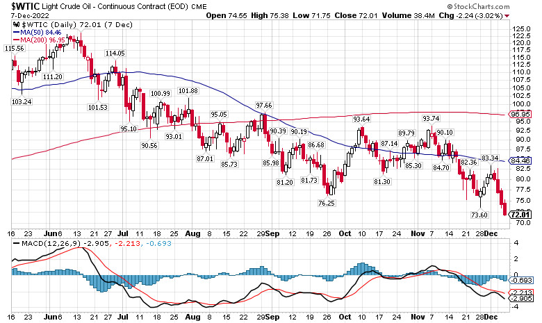 Нефть #CL — потолок принят, что дальше?ИнстаФорекс - Instaforex, 2 года назад Здравствуйте, уважаемые коллеги. Пару недель назад я уже обращал ваше внимание на негативный сценарий возможной динамики нефтяных цен, и сейчас ситуация стала развиваться как пописанному, но с некоторыми оговорками. Поэтому в этой статье мы наметим перспективы ценовых котировок нефти в связи с вновь открытыми обстоятельствами. Причин падения нефтяных котировок сейчас называют несколько. Это и рецессия мировой экономики, и карантинные ограничения в Китае, и повышение ставок со стороны ключевых центральных банков, стремящихся остановить инфляцию, и многие другие косвенные факторы. Однако я все же предполагаю, что основная причина текущего падения не в этом, а в финансовых манипуляциях фьючерсами нефти — и вот почему. Некоторое время назад я уже описывал ситуацию, сложившуюся на фьючерсном рынке, основой которого являются американские биржи. Ключевой проблемой нефти является то, что её ценообразование до недавнего времени происходило в США и за доллары США. Да, формально на американском рынке присутствуют трейдеры со всего мира, но надзор за котировками осуществляет комиссия по товарным фьючерсам США-CFTC. Учитывая, что нефть — это стратегический товар, было бы странно, если бы США упустили возможность регулировать цену, так как им это выгодно. Естественно, у меня нет прямых доказательств, но косвенно манипуляции нефтью подтверждаются значительным расхождением в прогнозе между трейдерами биржи NYMEX и аналитиками Агентства Энергетической Информации США — US EIA. Как показал новый, декабрьский, краткосрочный прогноз Short Term Energy Outlook, расхождение в прогнозе цены нефти на 2023 года между теми, кто анализирует рынок, и теми, кто ставит на него деньги, составляет около $8.50 долларов (рис.1). рис.1: Прогноз цены нефти сорта WTI #CL от трейдеров и аналитиков Так, например, аналитики US EIA предполагают, что средняя цена нефти WTI, доступной для торговли в терминалах Instaforex, под тиккером #CL, в 2023 году составит $86.33. В свою очередь, трейдеры оценивают нефть по средневзвешенной цене $77.86. Это достаточно существенное расхождение, говорящее о том, что фундаментальные данные, полученные в результате исследования рынков, сейчас значительно расходятся с биржевыми котировками. При этом по сравнению с прошлым месяцем прогноз обеими категориями был снижен, а расхождение увеличилось. В ноябре 2022 года US EIA предполагали на 2023 год среднюю цену сорта WTI $89.33, трейдеры же рассматривали среднюю цену на уровне $81.56. Интересно, что в декабре 2021 года аналитики предполагали среднюю цену в 22 году 66.46, трейдеры же ставили на цену $65.33, как видим, они ошибались достаточно существенно. Средняя цена нефти WTI за 11 месяцев 2022 года составила $96.45, но расхождение в цифрах тогда было меньше и составляло около одного доллара, а не восемь с половиной, как сейчас. Как видим, ошибаются в прогнозе рынка все, и ошибаются довольно существенно, однако текущая разница в оценках говорит мне о том, что стороны совершенно по-разному оценивают перспективы происходящего. Трейдеры закладываются на рецессию, а аналитики предполагают, что сильного падения спроса не будет и ОПЕК+ сумеет в случае необходимости отрегулировать добычу. Все это подчёркивает одну очень правильную мысль, произнесённую Дуайтом Эйзенхауэром: «Когда готовишься к ср